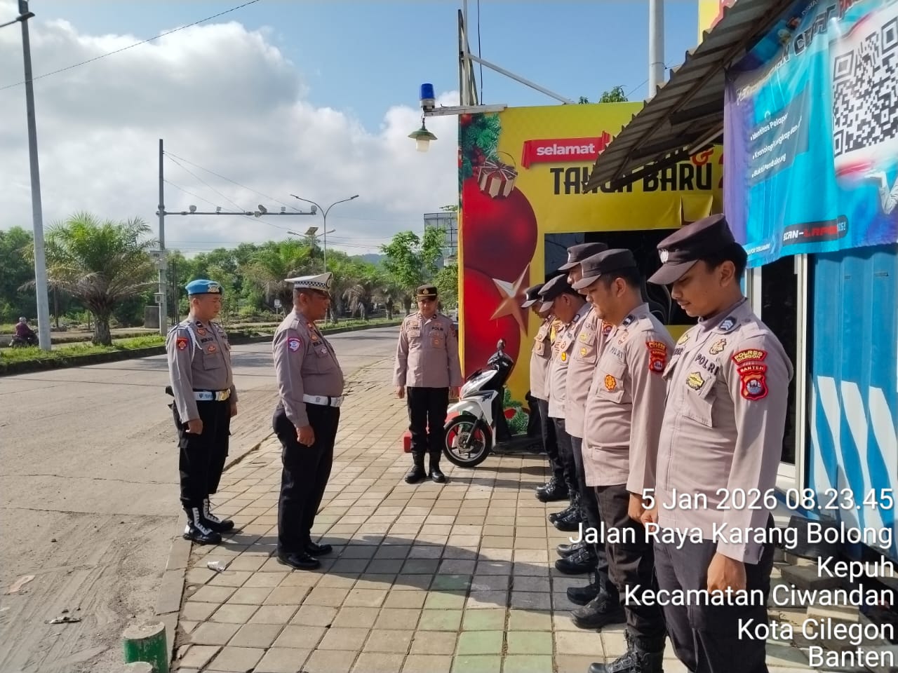 Kapolres Cilegon Polda Banten AKBP Dr. Martua Raja Taripar Laut Silitonga yang di wakili Kapolsek Ciwandan Polres Cilegon Polda Banten Kompol Andi Suherman mengatakan, "Guna terciptanya kelancaran arus Libur Natal Dan tahun Baru 2025-2026, Pospam 5 Ciwandan merekayasa arus lalu lintas yang akan menuju Pelabuhan Pelindo Banten.