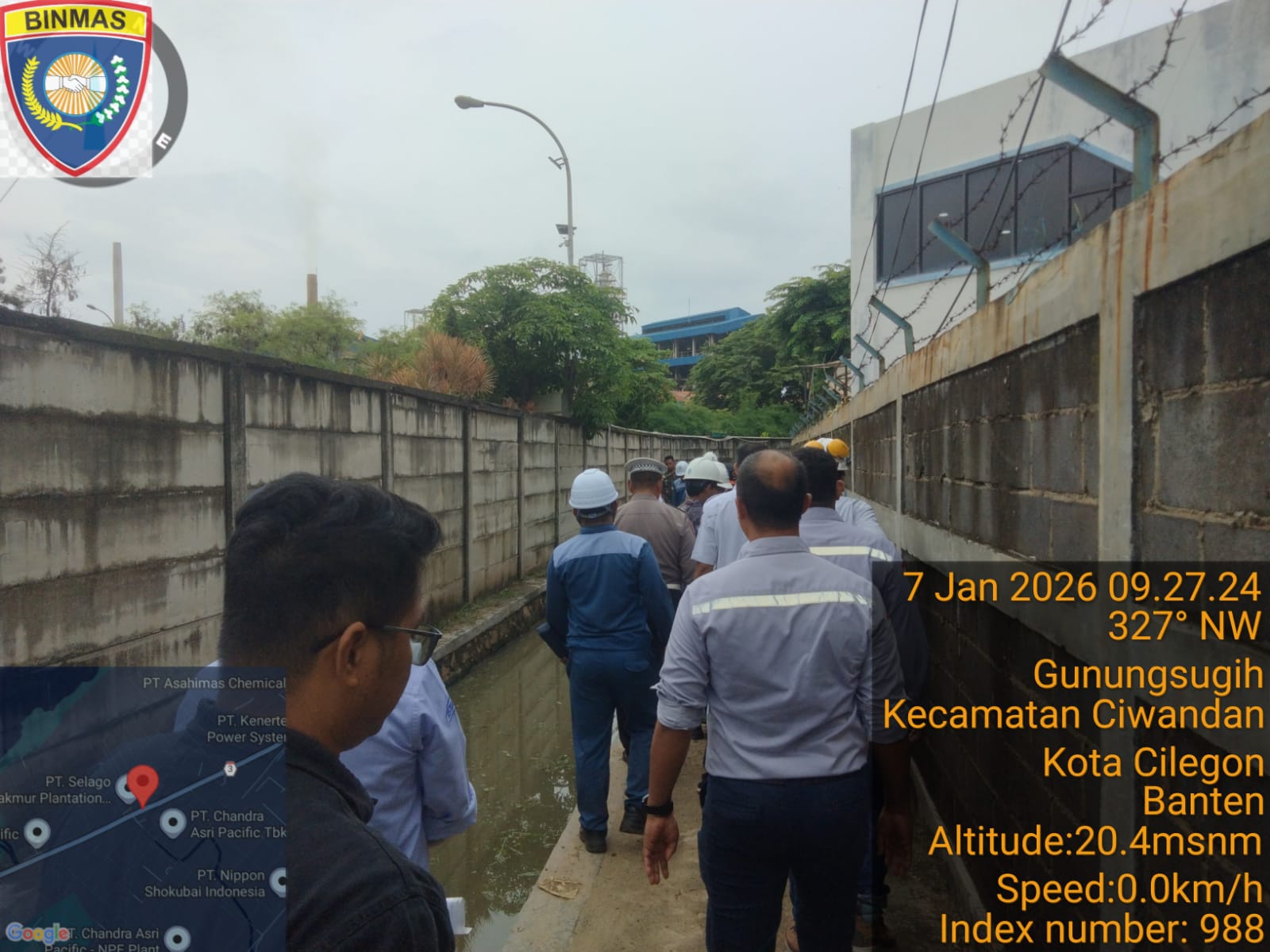 Cilegon - Polres Cilegon melalui Polsek Ciwandan melakukan pendampingan pengecekan saluran air atau dreinase di wilayah Gunung Sugih, Ciwandan, bersama dengan FORKOPIMDA, FORKOPINCAM, dan industri yang tergabung dalam Forum FIKS (Forum Industri Kepuh dan Gunung Sugih). Rabu (07/01/2026).