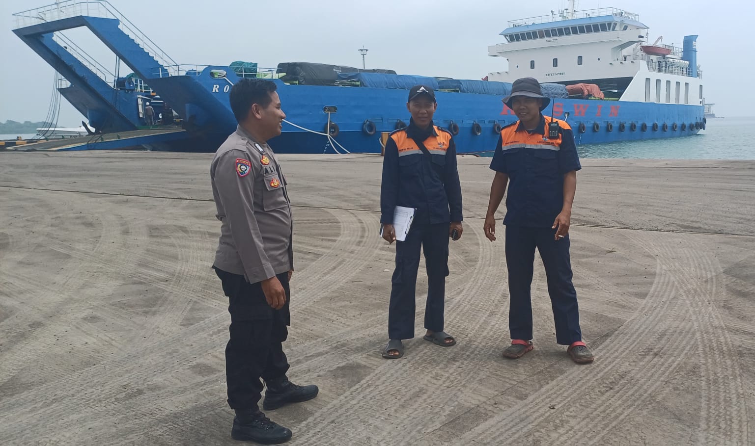 Jalin Silaturahmi, Bhabinkamtibmas Polsek Kawasan Pelabuhan Banten berbincang ke Buruh Pelabuhan