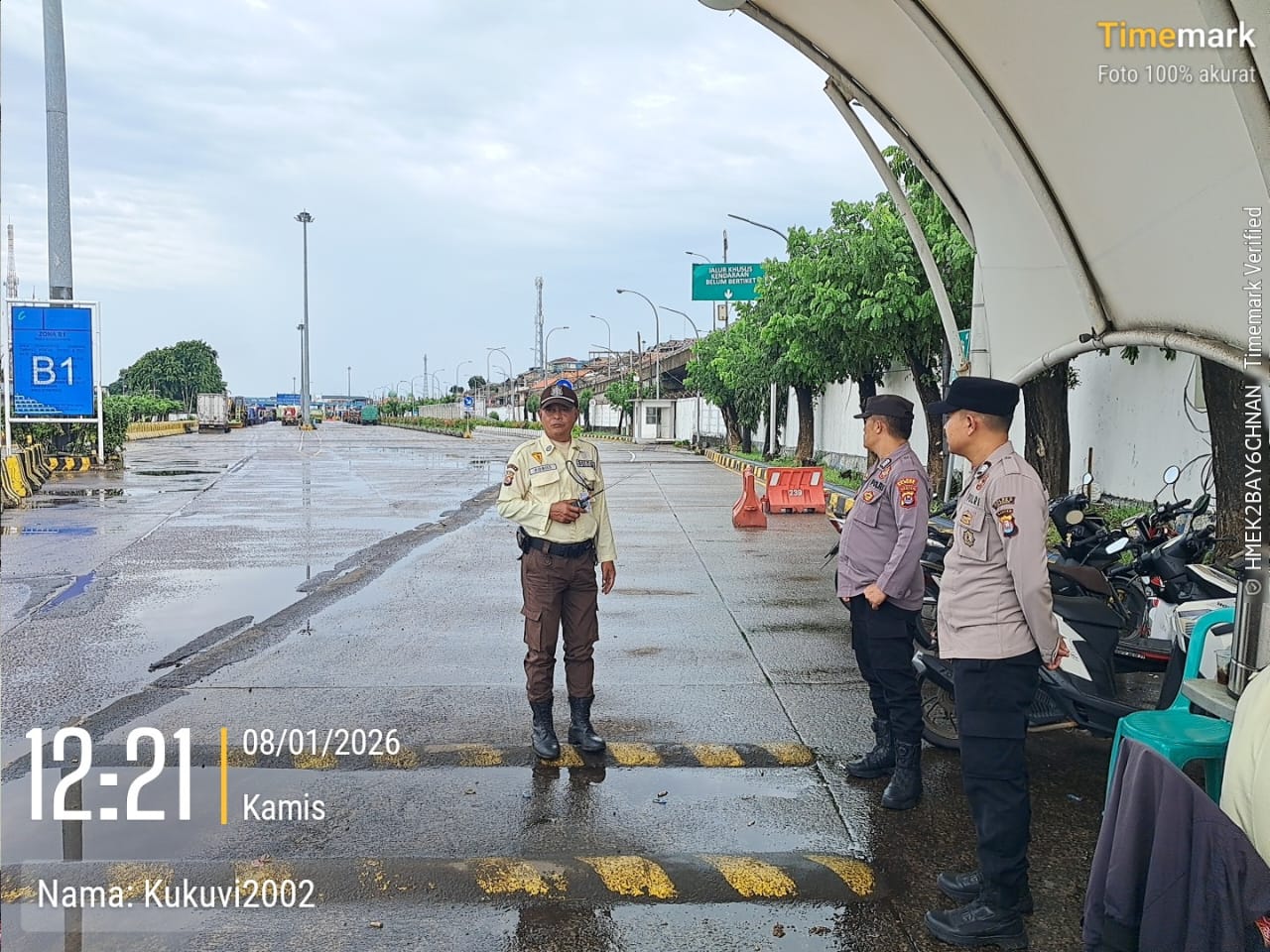 Cilegon - Personel Polsek Kskp Merak Polres Cilegon Polda Banten melaksanakan sambang dan patroli kawasan pelabuhan merak dalam rangka menjaga Harkamtibmas di Kawasan Pelabuhan Merak, Kamis (08/01/2026).