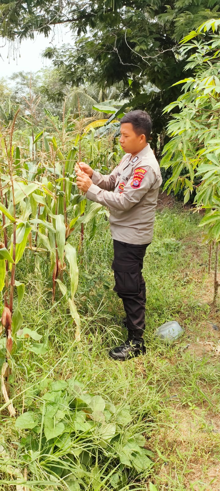 bripka agustoni lakukan pengecekan tanaman jagung warga di kotabumi ,pererat sinergi polri dan masyarkat