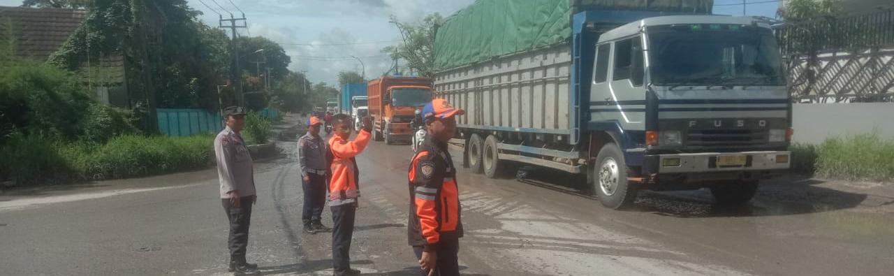 Aksi Nyata Pelayanan Masyarakat Di Sore, Bripka Leo & Dishub Bantu Lancarkan Lalu-lintas Di Jalan Raya PT SMI Bojonegara