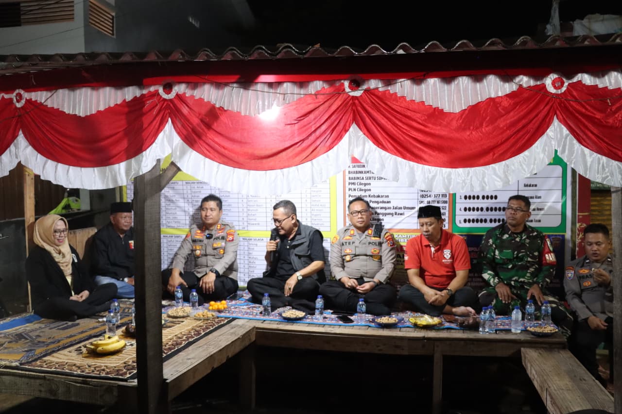 Kegiatan yang berlangsung sekitar pukul 22.16 WIB tersebut dihadiri langsung Kapolres Cilegon bersama jajaran pejabat utama Polres Cilegon, di antaranya Kabag Ops AKP Choirul Anam, S.H., M.H., M.Si., Kasat Binmas IPTU Muhyiddin, S.H., Kasie Propam AKP Herry Susanto, S.H., M.M., serta Kasat Lantas AKP Ridwan, S.T.K., S.I.K., M.H. Turut mendampingi Kapolsek Cibeber AKP Atep Mulyana, S.H., M.Si. bersama jajaran fungsi pembinaan dan Bhabinkamtibmas.
