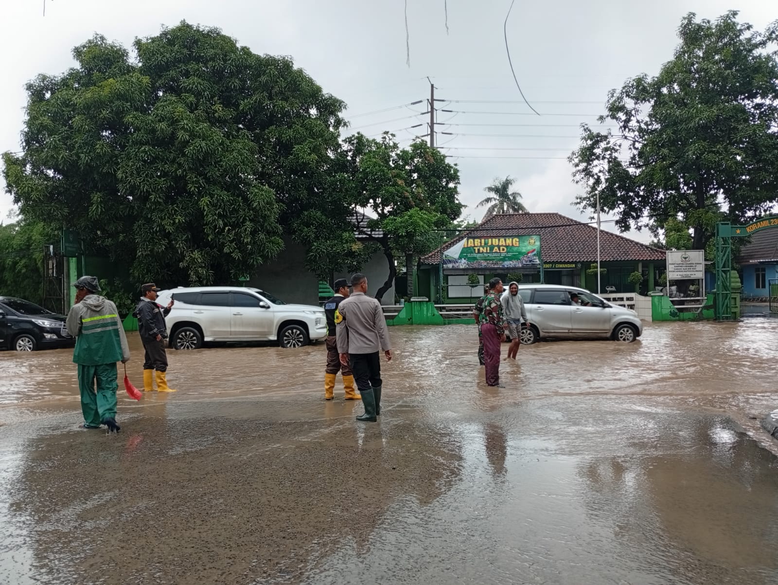Dalam upaya penanganan dampak Banjir/ Genangan Air di Jalan Raya Ciwandan – Anyer didepan Koramil Ciwandan Dan kawasan Kiec II Kelurahan Tegal Ratu Kecamatan Ciwandan Kota Cilegon dengan ketinggian debit air 40 cm sehingga jalur 2 (dua) arah tidak dapat dilintasi oleh kendaraan baik R2 maupun R4 pribadi, tuturnya.