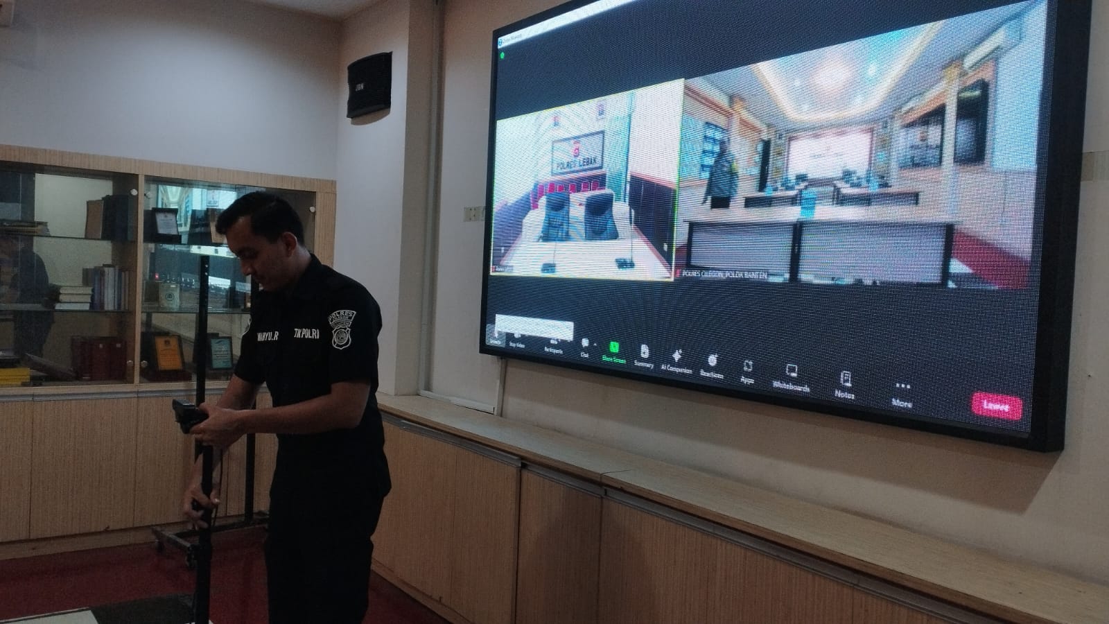 Anggota TIK Polres Cilegon Pastikan Zoom Meeting Berjalan Lancar