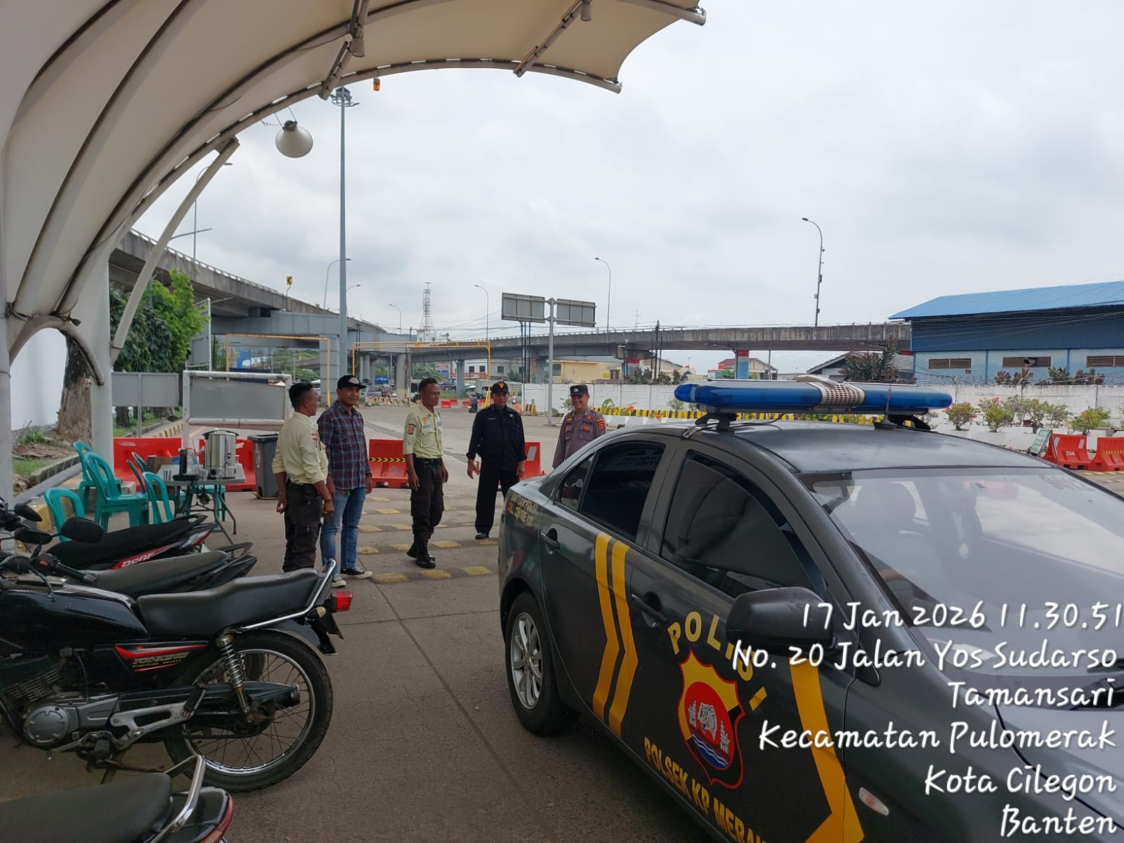 Cilegon - Personel Polsek Kskp Merak Polres Cilegon Polda Banten melaksanakan sambang dan patroli kawasan pelabuhan merak dalam rangka menjaga Harkamtibmas di Kawasan Pelabuhan Merak, Sabtu (17/01/2026).