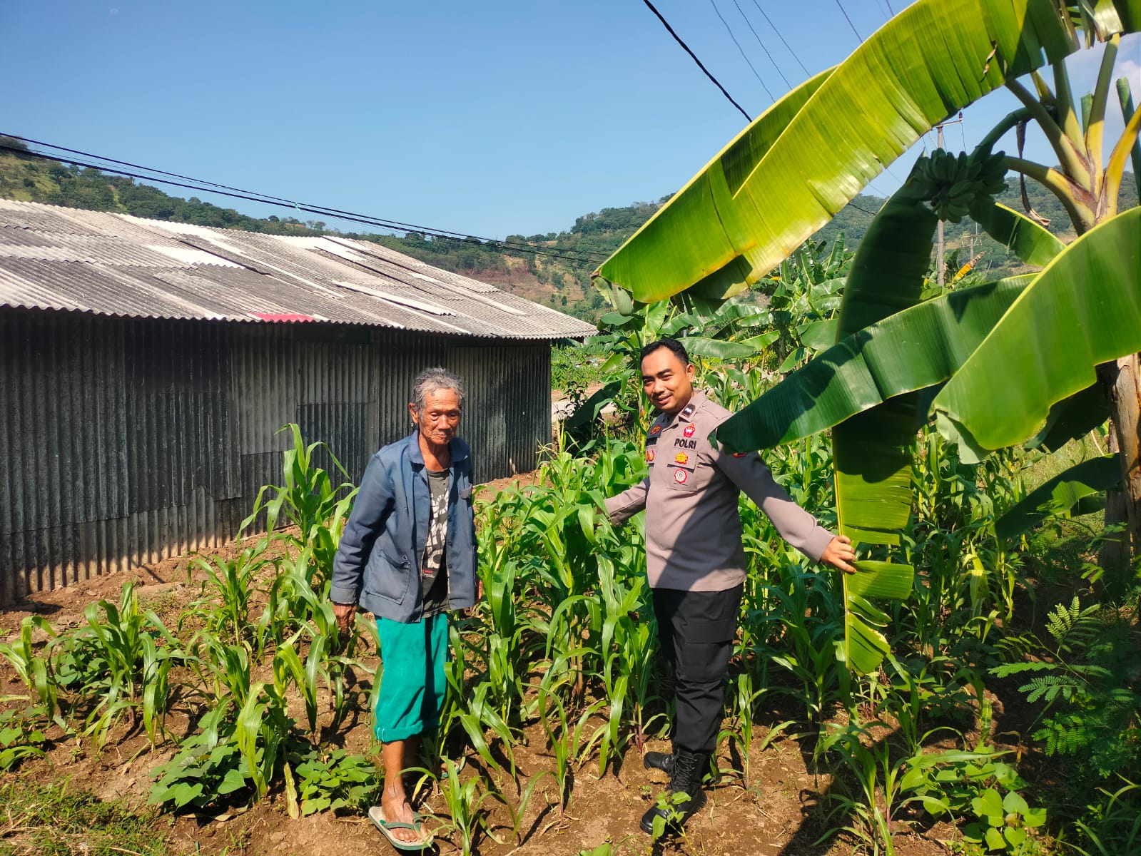 Pantau lahan jagung pok tani sinarjaya kecamatan.puloampel Desa Mangunreja oleh Bhabinkamtibmas Polsek Puloampel