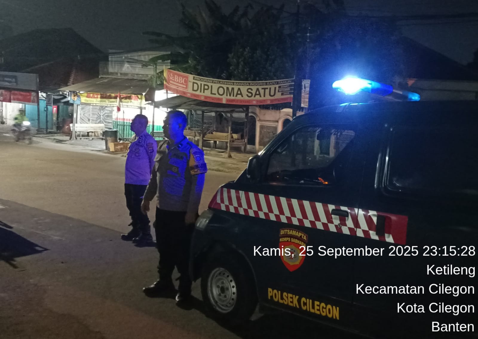 Anggota patroli Polsek Cilegon laksanakan giat Blue light patrol antisipasi kejahatan malam hari jaga kondusifitas di wilayah binaannya