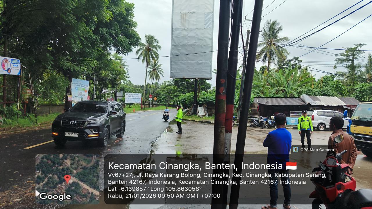 *Polres Cilegon* - Dalam Mewujudkan Aksi Nyata Pelayanan Kepada Masyarakat,Personil Polsek Cinangka Polres Cilegon Polda Banten Laksanakan Strong Poin Pengaturan Lalu-lintas,Rabu (21/01/2026).