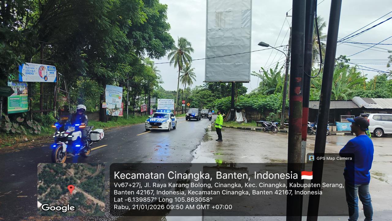 *Polres Cilegon* - Dalam Mewujudkan Aksi Nyata Pelayanan Kepada Masyarakat,Personil Polsek Cinangka Polres Cilegon Polda Banten Laksanakan Strong Poin Pengaturan Lalu-lintas,Rabu (21/01/2026).