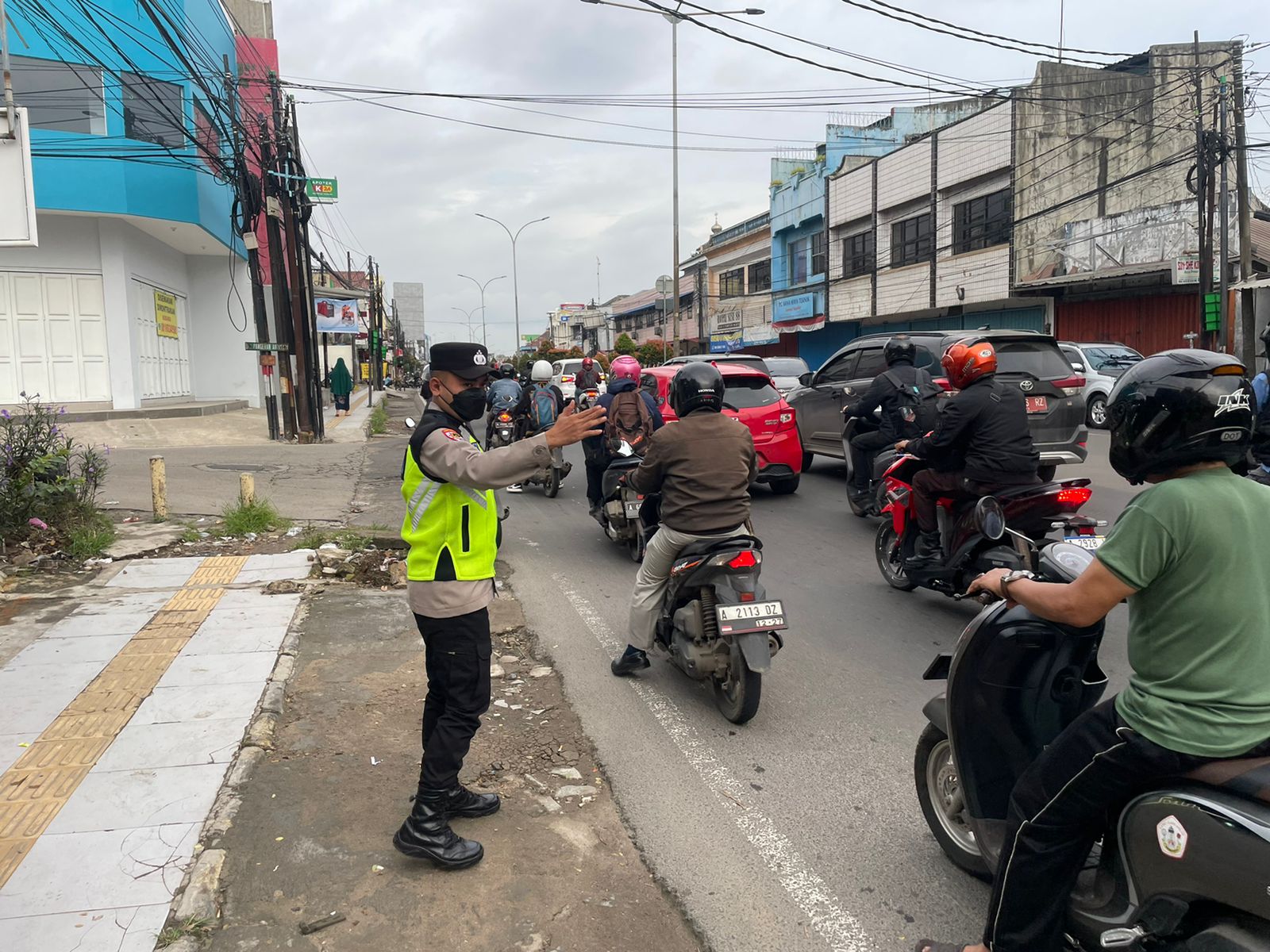 Cilegon,Polres Cilegon Polda Banten Pada Senin 26/01/2025 Pukul 06.30 Wib, Personil Siwas Polres Cilegon, Brigpol Hadi sudrajat melaksanakan kegiatan pengaturan arus lalu lintas di Jalur Protokol jalan utama Kota Cilegon tepat nya di jalur protokol Kota Cilegon.