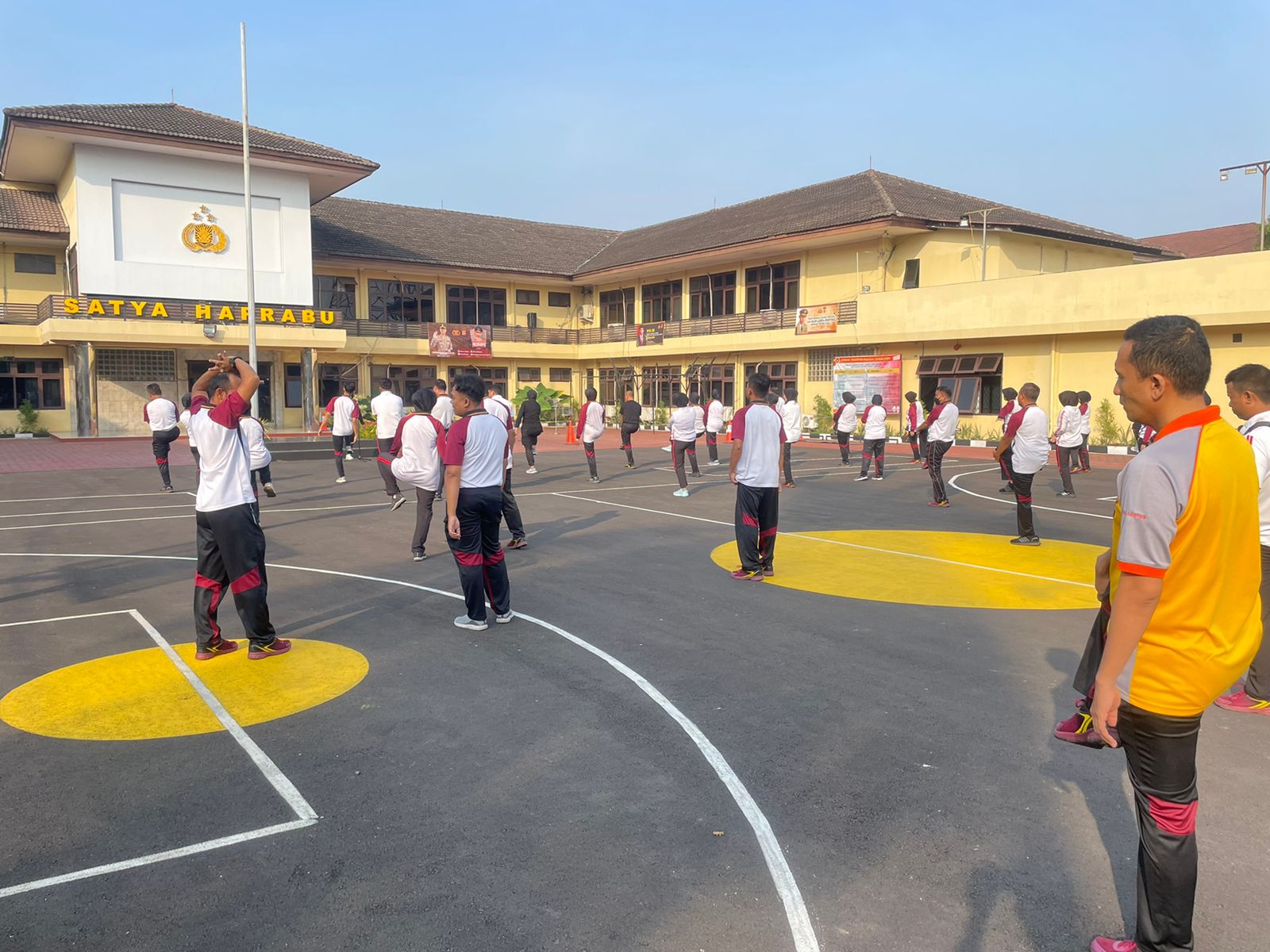 Anggota sium Polres Cilegon Tampil dalam rangka pellaksanaan kegiatan aktivitas pembinaan Jasmani.
