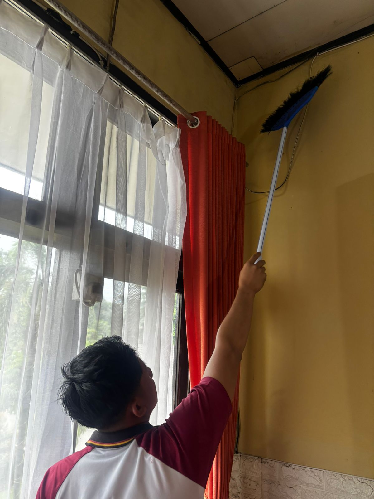 bersih-bersih ruangan dalam rangka mendukung Program Prioritas kapolda Banten