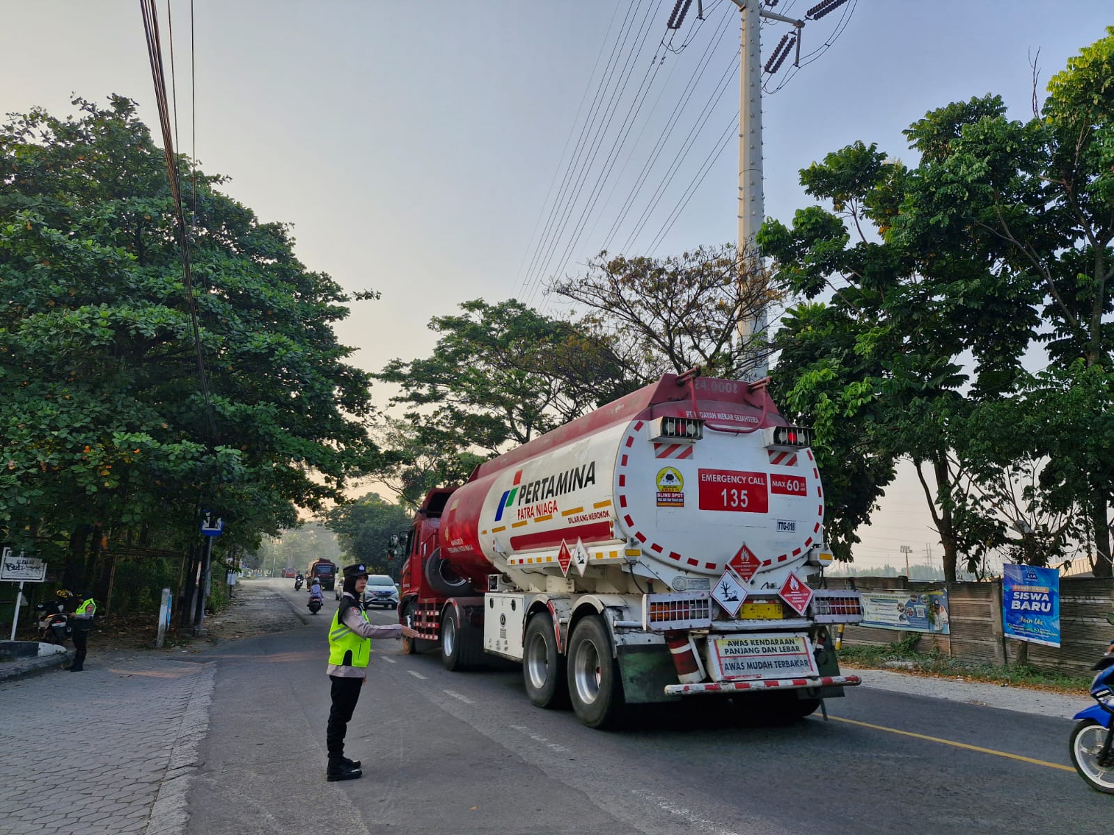 Cilegon,Polres Cilegon Polda Banten Pada Selasa/27/01/2026 Pukul 06.30 Wib, Personil Siwas Polres Cilegon, Aipda Emi Prasetyo melaksanakan kegiatan pengaturan arus lalu lintas di Jalur Protokol jalan utama Kota Cilegon tepat nya di jalur depan perumahan arga baja Pura Kota Cilegon.