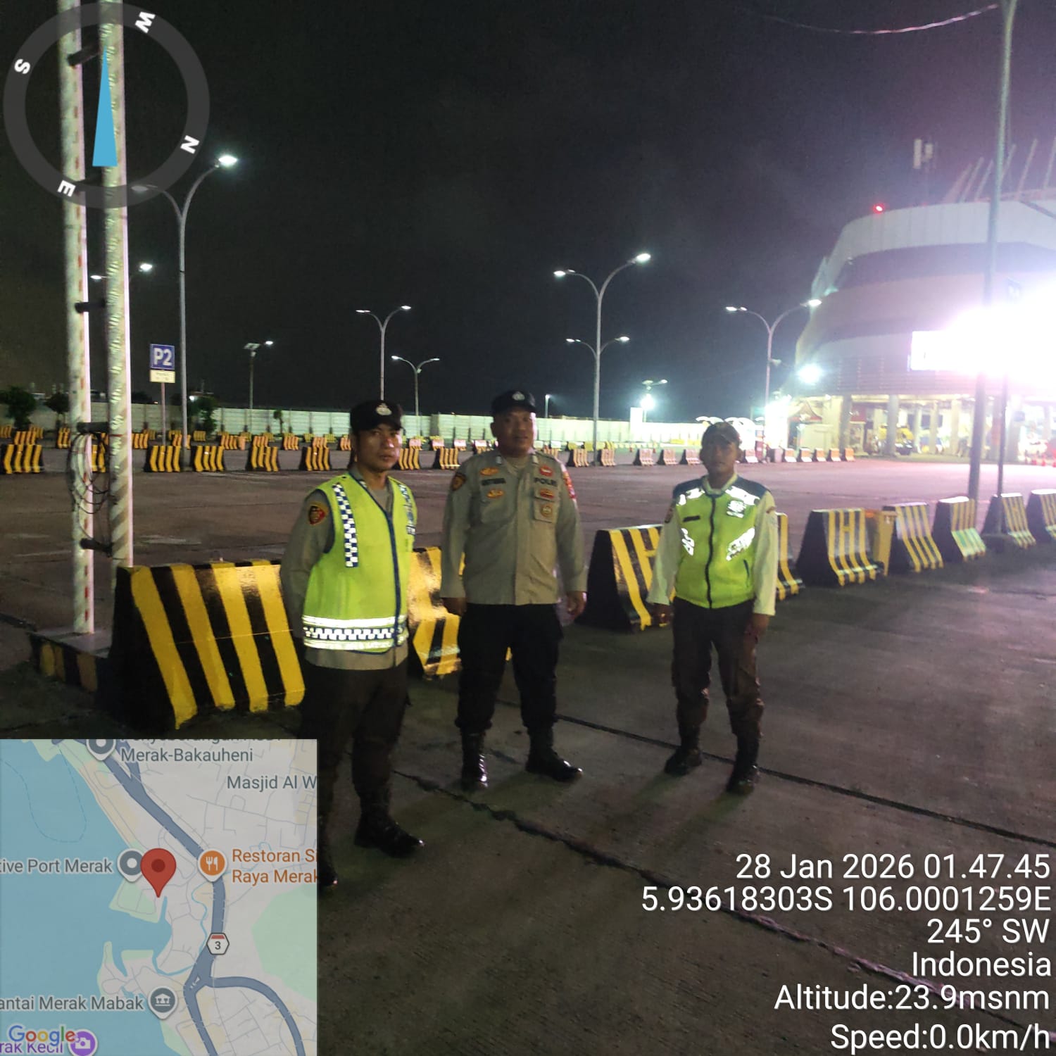 Cilegon - Personil Polsek Kskp Merak Polres Cilegon melaksanakan patroli di kawasan pelabuhan merak memberikan rasa aman dan damai, Rabu (28/01/2026)