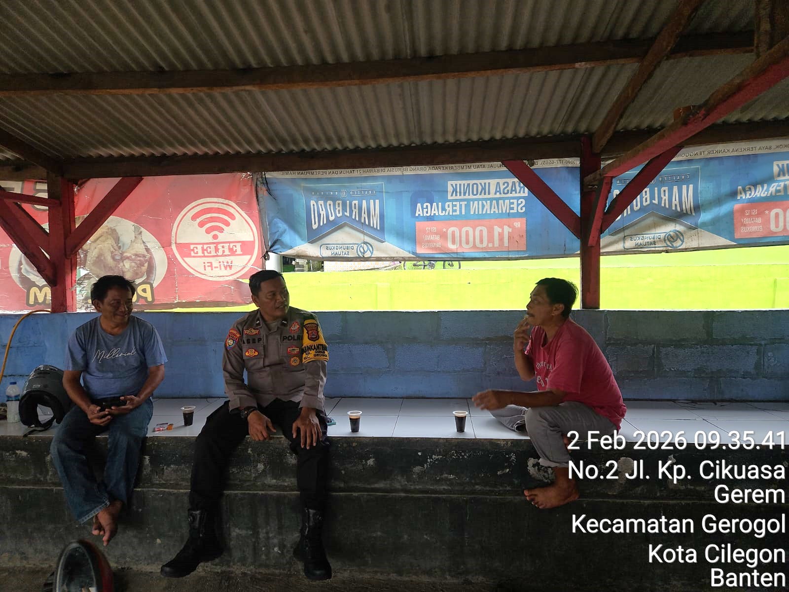 Kapolres Cilegon AKBP Martua Raja Taripar Laut Silitonga melalui Kapolsek Pulomerak Polres Cilegon KOMPOL Dongan Pardamean Ambarita menjelaskan menjalin kemitraan dan komunikasi dengan warga dan mengaktifkan jaringan komunikasi sebagai wujud kepedulian terhadap situasi kamtibmas di lingkunganya selalu mendukung masyarakat dan sampaikan pesan kamtibmas.