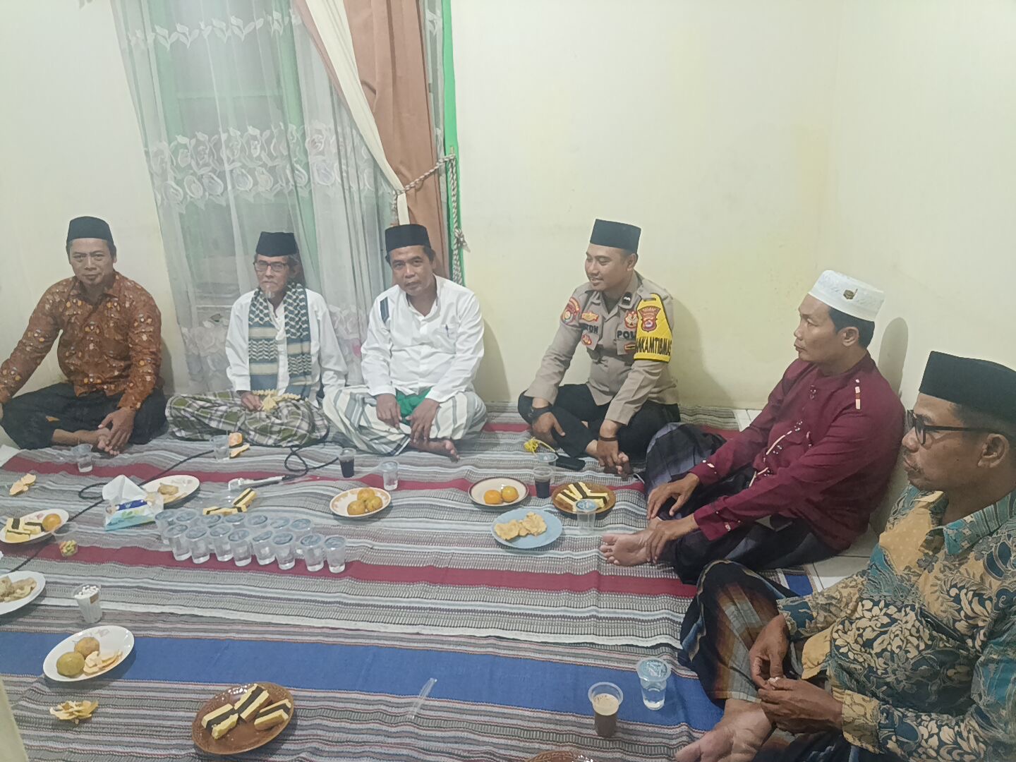 Personil Bhabinkamtibmas Polsek Purwakarta melaksanakan kegiatan tahlil di lingkungan Karang Tengah, Kelurahan Pabean, Kecamatan Purwakarta, Kota Cilegon