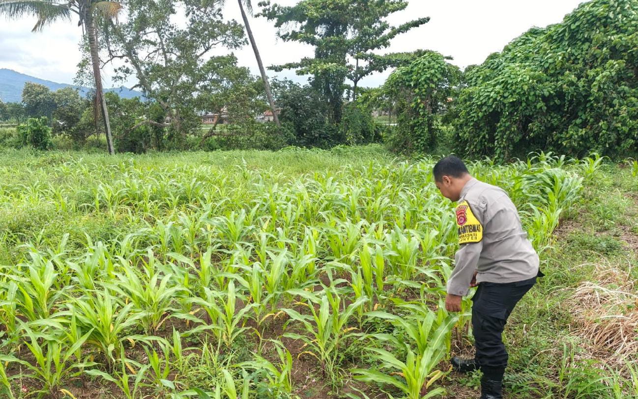 Bhabinkamtibmas Polsek Anyar Cek Pertumbuhan Tanaman Jagung