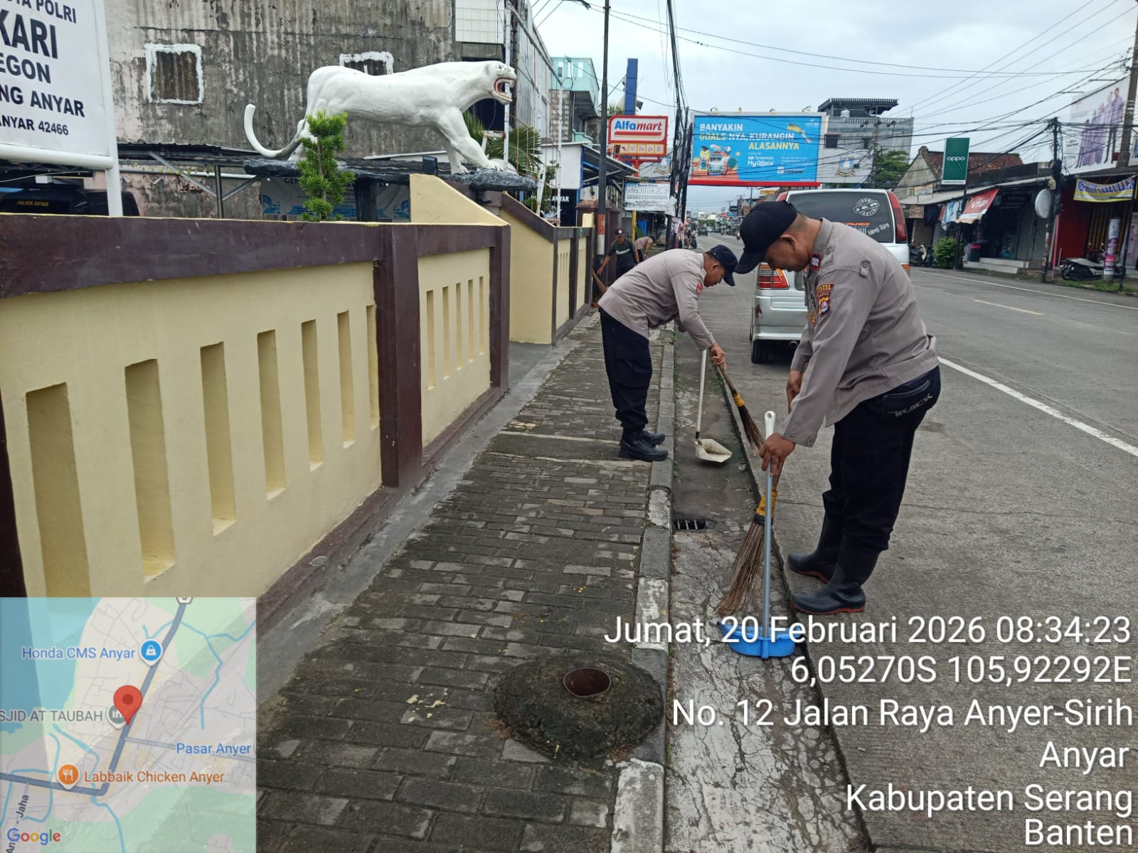 Anggota Polsek Anyar melaksanakan kegiatan Jumat Bersih di sekitar lingkungan Markas Komando (Mako) Polsek Anyar. Jumat (20/02/2026)