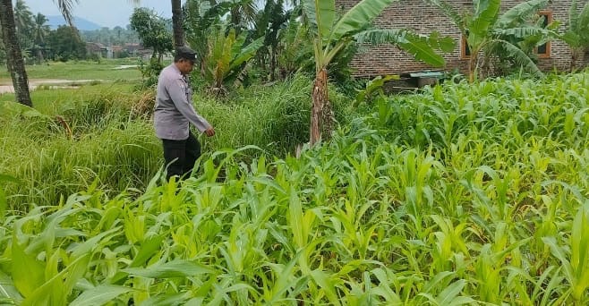 Personil Bhabinkamtibmas Polsek Purwakarta Cek dan Monitoring Tanaman Jagung Dukung Program Swasembada dan Ketahanan Pangan