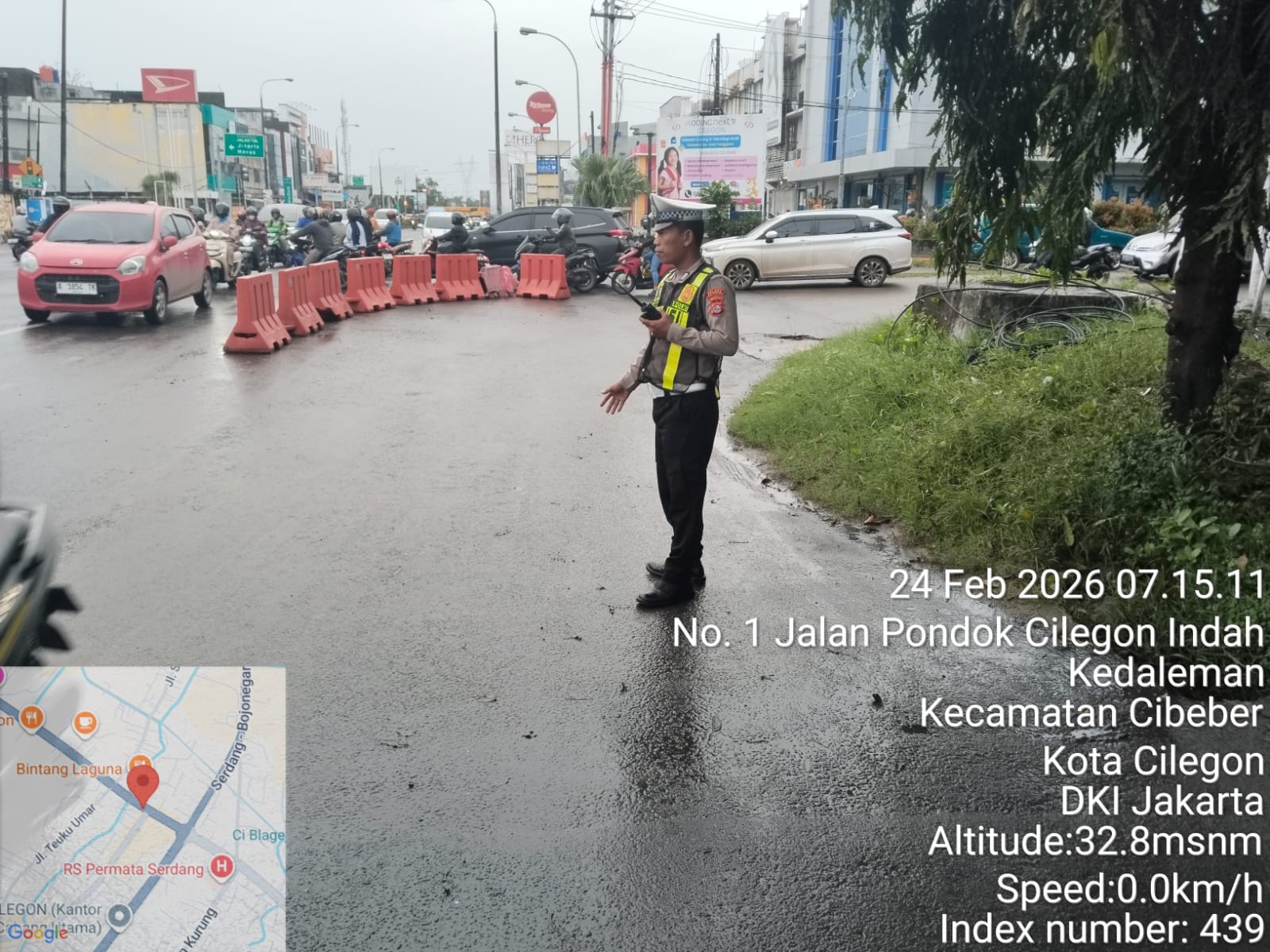 Cilegon, Satlantas Polres Cilegon Polda Banten – Berikan pelayanan kepada masyarakat Kasat lantas Polres Cilegon AKP Ridwan memerintahkan jajaran lalulintas untuk melaksanakan pengaturan lalu lintas di penggal – penggal jalan yang rawan kemacetan di Kota Cilegon, (Selasa,24/2/2026)