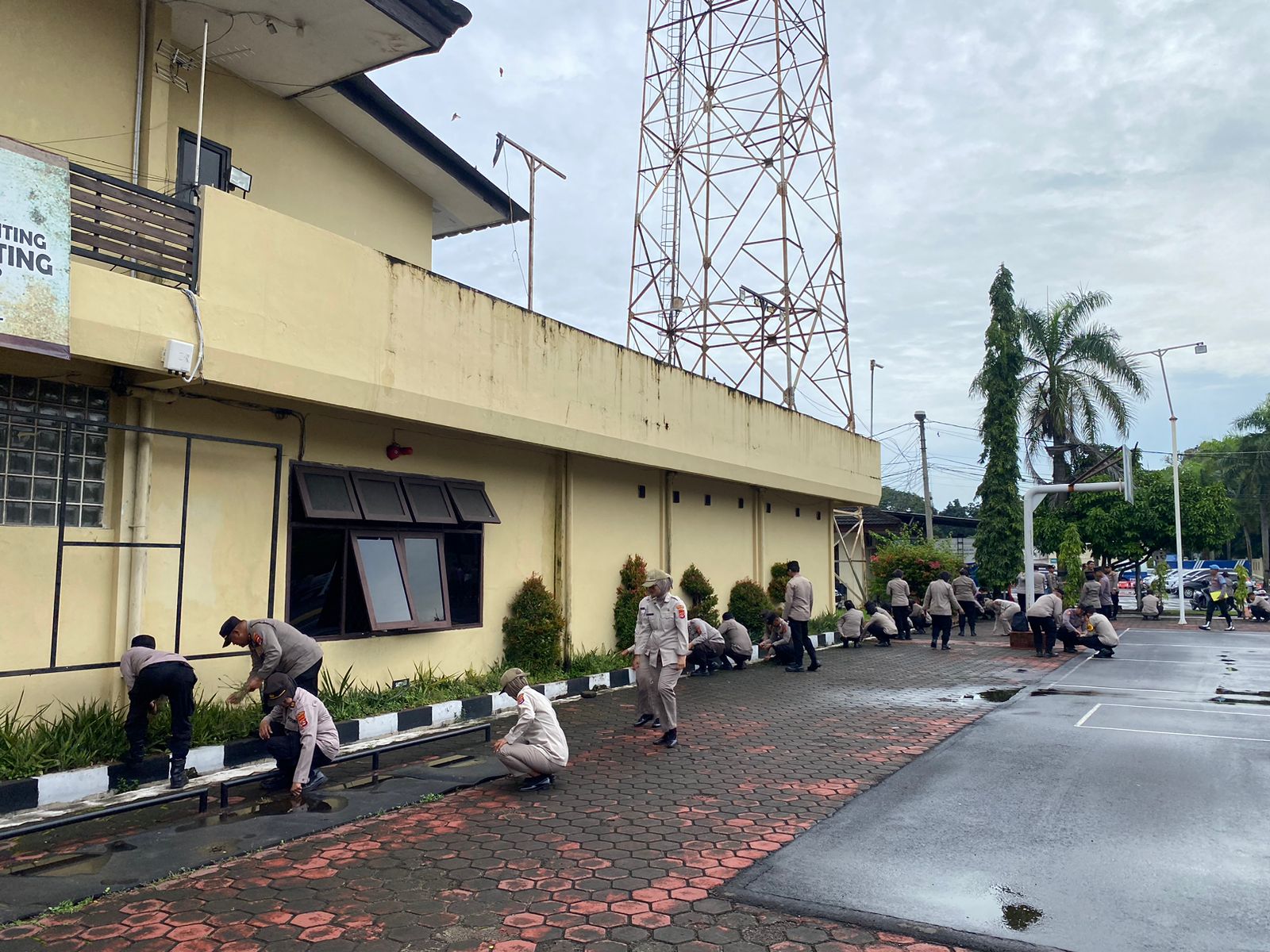 Hal ini dilakukan untuk kebersihan mako Polres Cilegon agar terlihat bersih,rapih dan indah.,Selasa, 25/2/26.