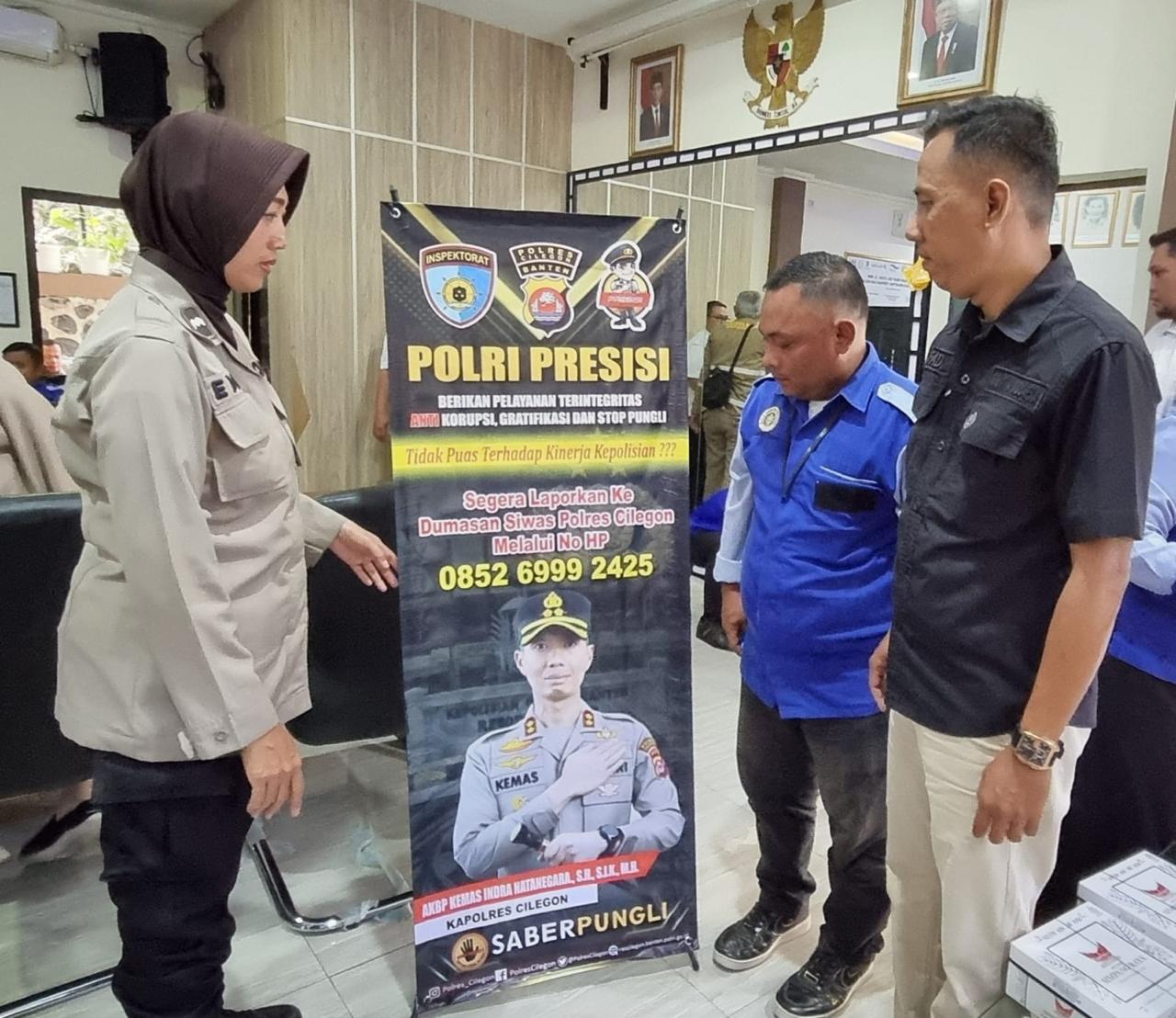 Kegiatan ini guna memberi tahu kepada masyarakat jika mempunyai keluhan terhadap pelayanan yang di berikan bisa segera menghubungi kami selaku seksi pengawasan dari Polres Cilegon.