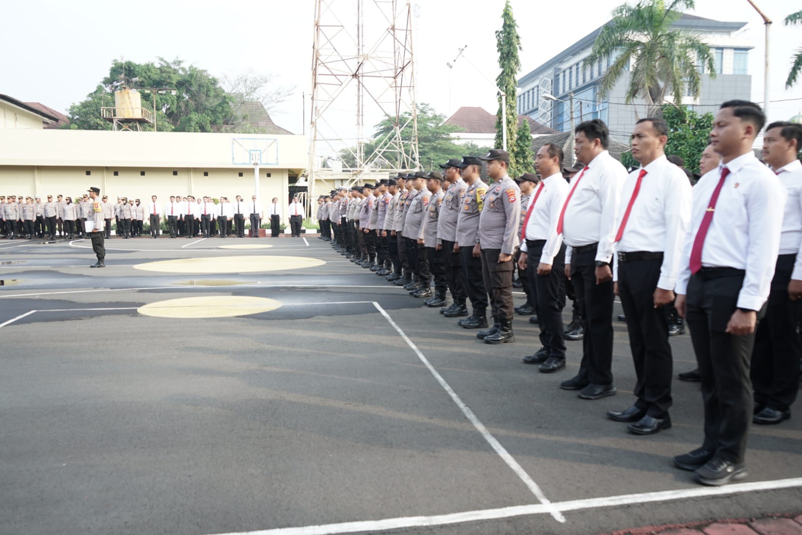 melaksanakan apel pagi di lapangan apel Polres.