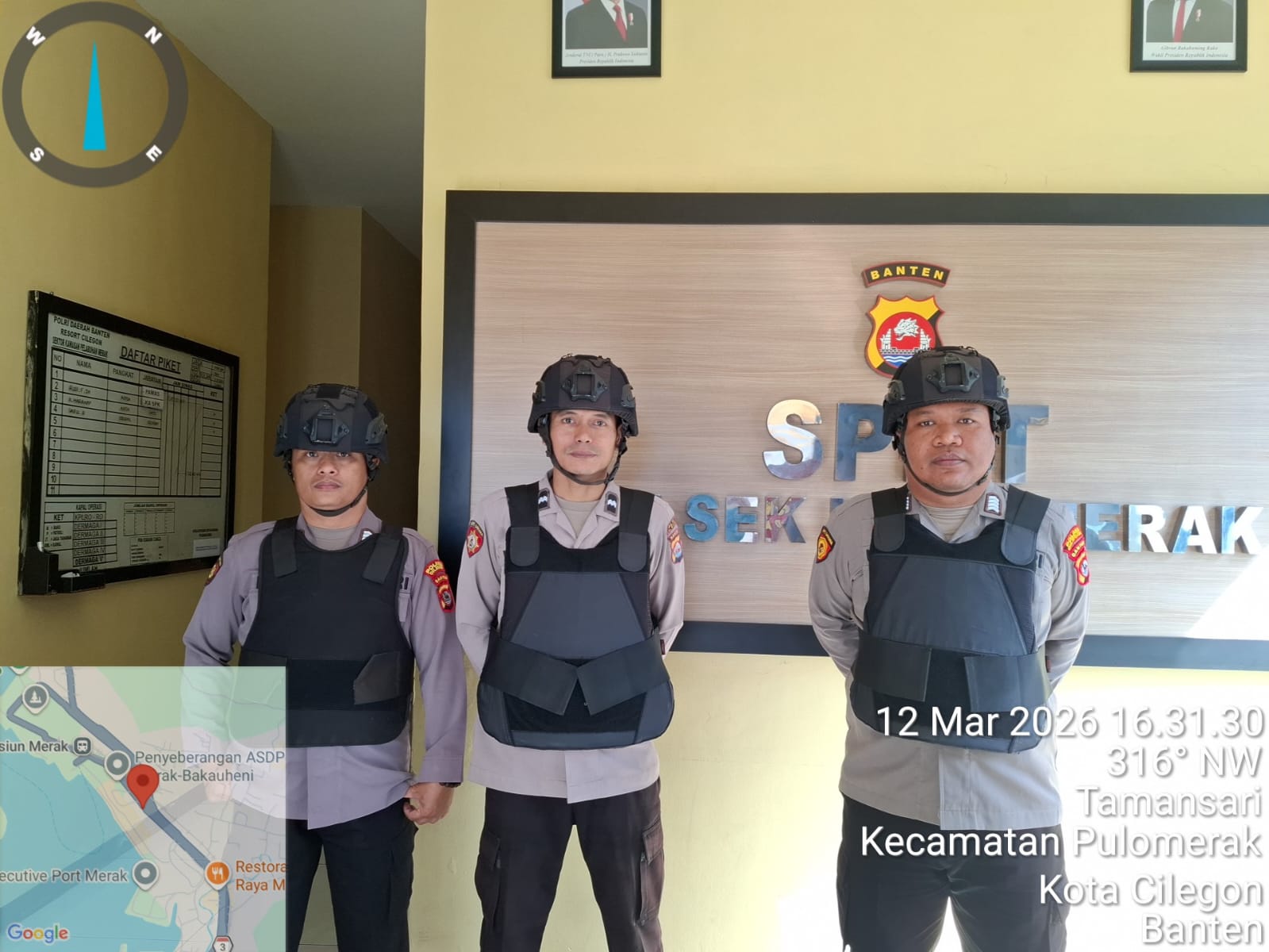 Cilegon - Personel piket jaga Polsek Kskp Merak Polres Cilgon Polda Banten melaksanakan siaga 1 Polsek pelaksanaan Sispam Mako oleh piket siaga dipimpin oleh Kspk Polsek Kskpy Merak Polres Cilegon Polda Banten, Kamis (12/03/2026).