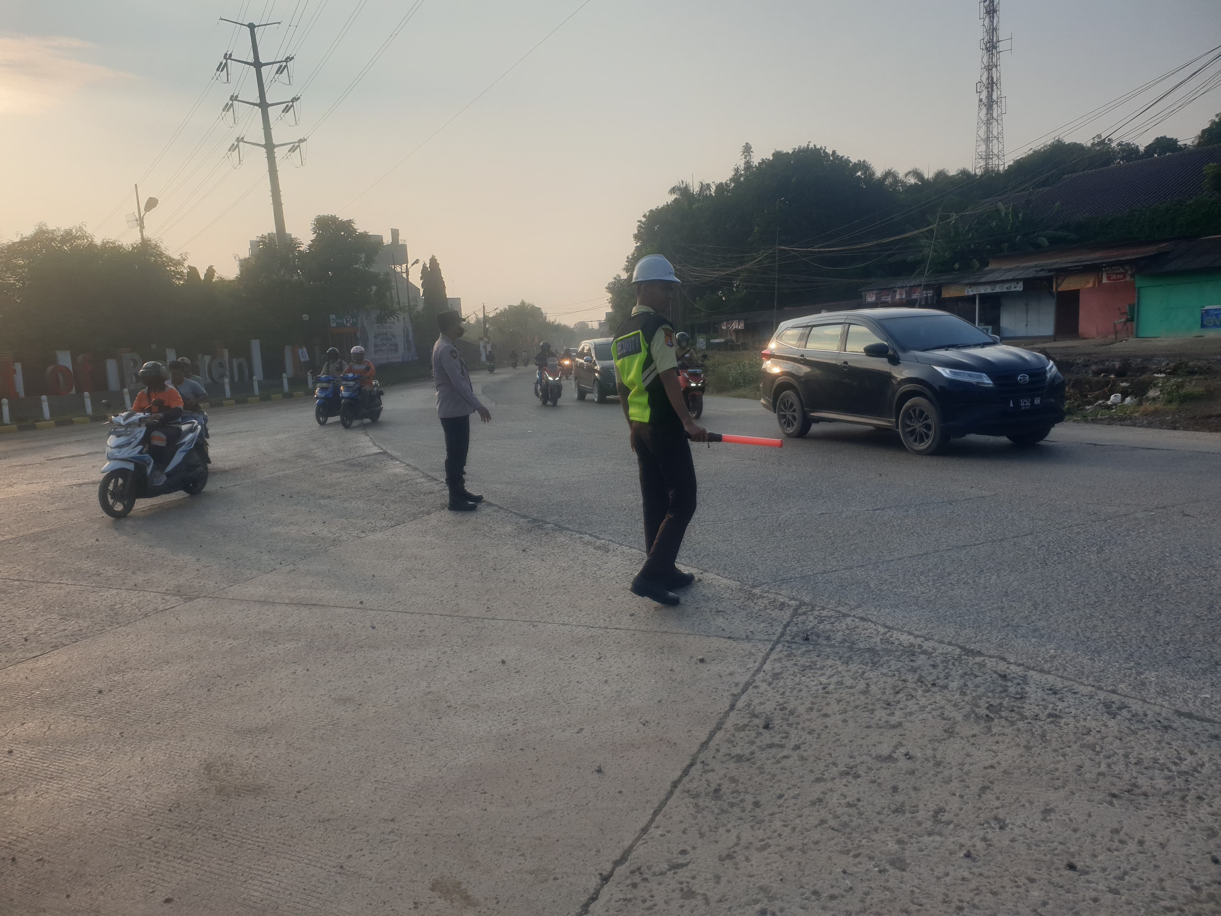 Kapolres Cilegon AKBP Martua Raja Taripar Laut Silitonga Melalui Kapolsek Kskp Banten Polres Cilegon AKP Fredo Leonard menyampaikan Laksanakan Pengamanan Sesuai plotinganya lakukan Pengaturan Supaya Arus Lalu Lintas tetap Berjalan lancar dan Pastikan tidak ada hambatan.