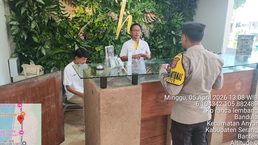 Personil Polsek Anyer Polres Cilegon rutin laksanakan koordinasi dengan Pengelola Wisata Pantai dan Hotel, pastikan wisata kondusif.