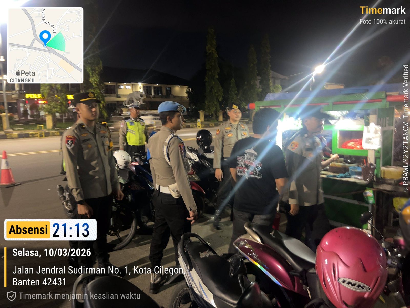 Pada malam hari yang tenang, jajaran personel dari Polres Cilegon melaksanakan patroli rutin guna menjaga situasi keamanan dan ketertiban masyarakat tetap kondusif. Patroli ini menyasar sejumlah titik rawan seperti kawasan permukiman, pusat keramaian, hingga jalur-jalur utama yang sering dilalui kendaraan pada malam hari.