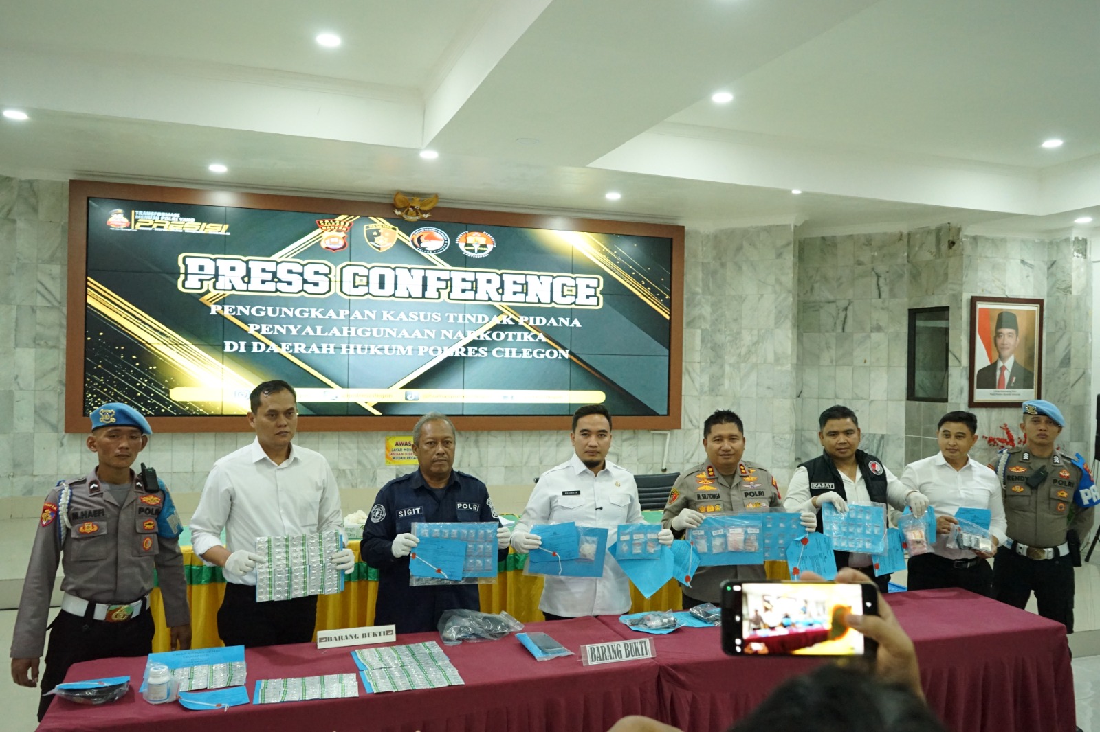 Kapolres Cilegon AKBP Dr. Martua Raja Taripar Laut Silitonga menyampaikan bahwa dari total tersangka, 9 orang berperan sebagai pengedar dan 3 orang sebagai perantara dalam transaksi narkotika.