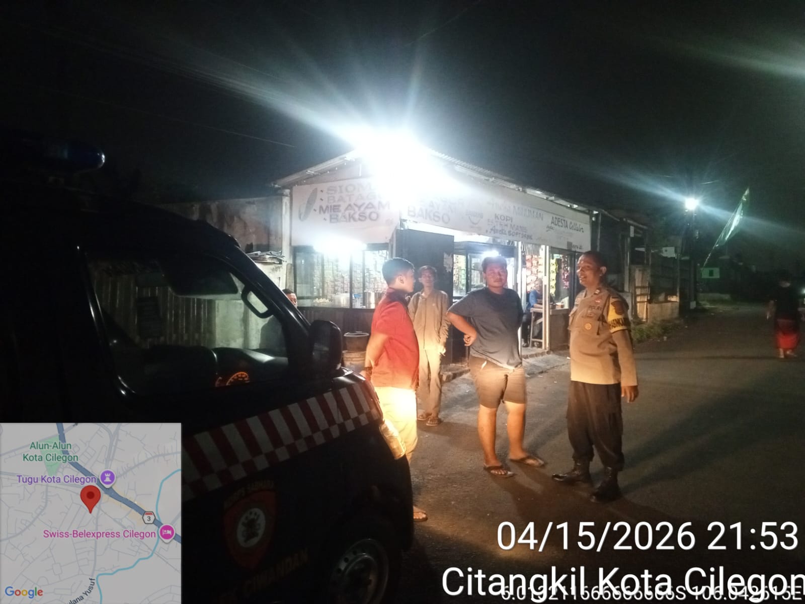 Cilegon - Personil Polsek Ciwandan Polres Cilegon Polda Banten Dalam Pelaksanaan Kegiatan Patroli dengan menyalakan lampu rotator berwarna biru di Daerah Hukum Polsek Ciwandan Polres Cilegon Polda Banten dari malam hingga dini hari, dalam rangka menciptakan situasi aman dan kondusif, Kamis (16/04/2026).