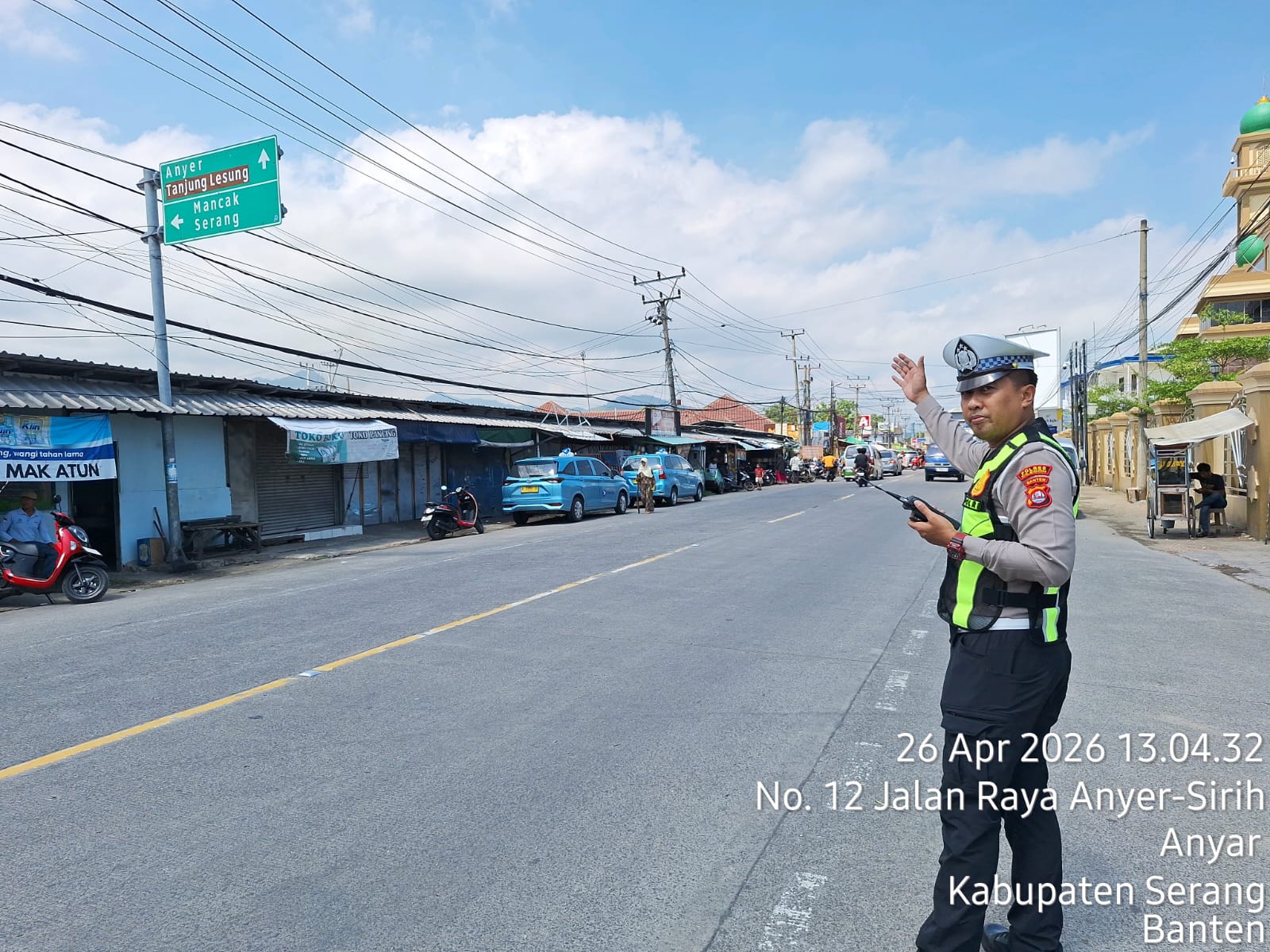 Cilegon, Satlantas Polres Cilegon Polda Banten – Berikan pelayanan kepada masyarakat Kasat lantas Polres Cilegon AKP Ridwan memerintahkan jajaran lalulintas untuk melaksanakan pengaturan lalu lintas di penggal – penggal jalan yang rawan kemacetan di Kota Cilegon, (Minggu,26/4/2026)
