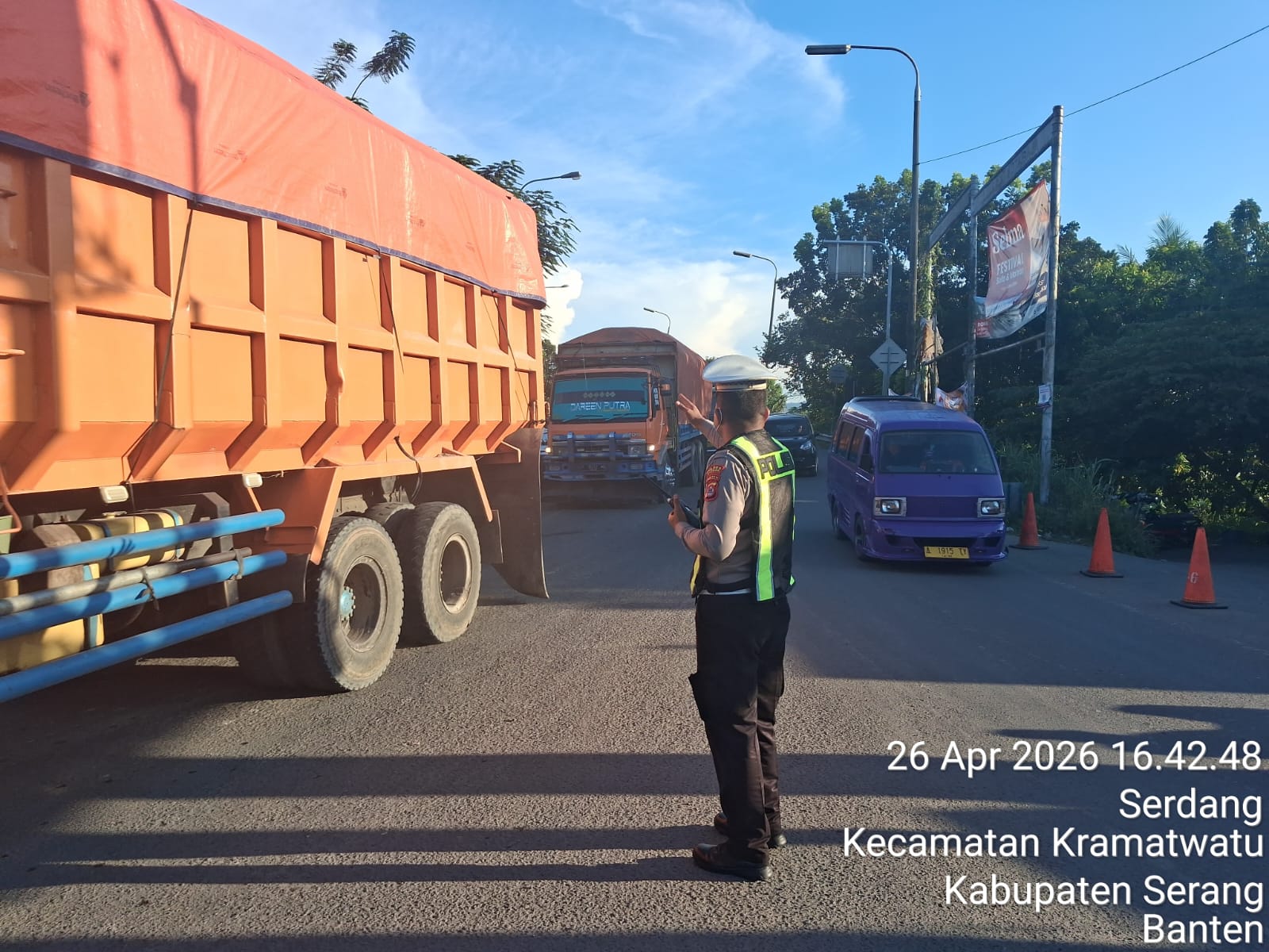 Cilegon, Satlantas Polres Cilegon Polda Banten – Berikan pelayanan kepada masyarakat Kasat lantas Polres Cilegon AKP Ridwan memerintahkan jajaran lalulintas untuk melaksanakan pengaturan lalu lintas di penggal – penggal jalan yang rawan kemacetan di Kota Cilegon, (Minggu,26/4/2026)
