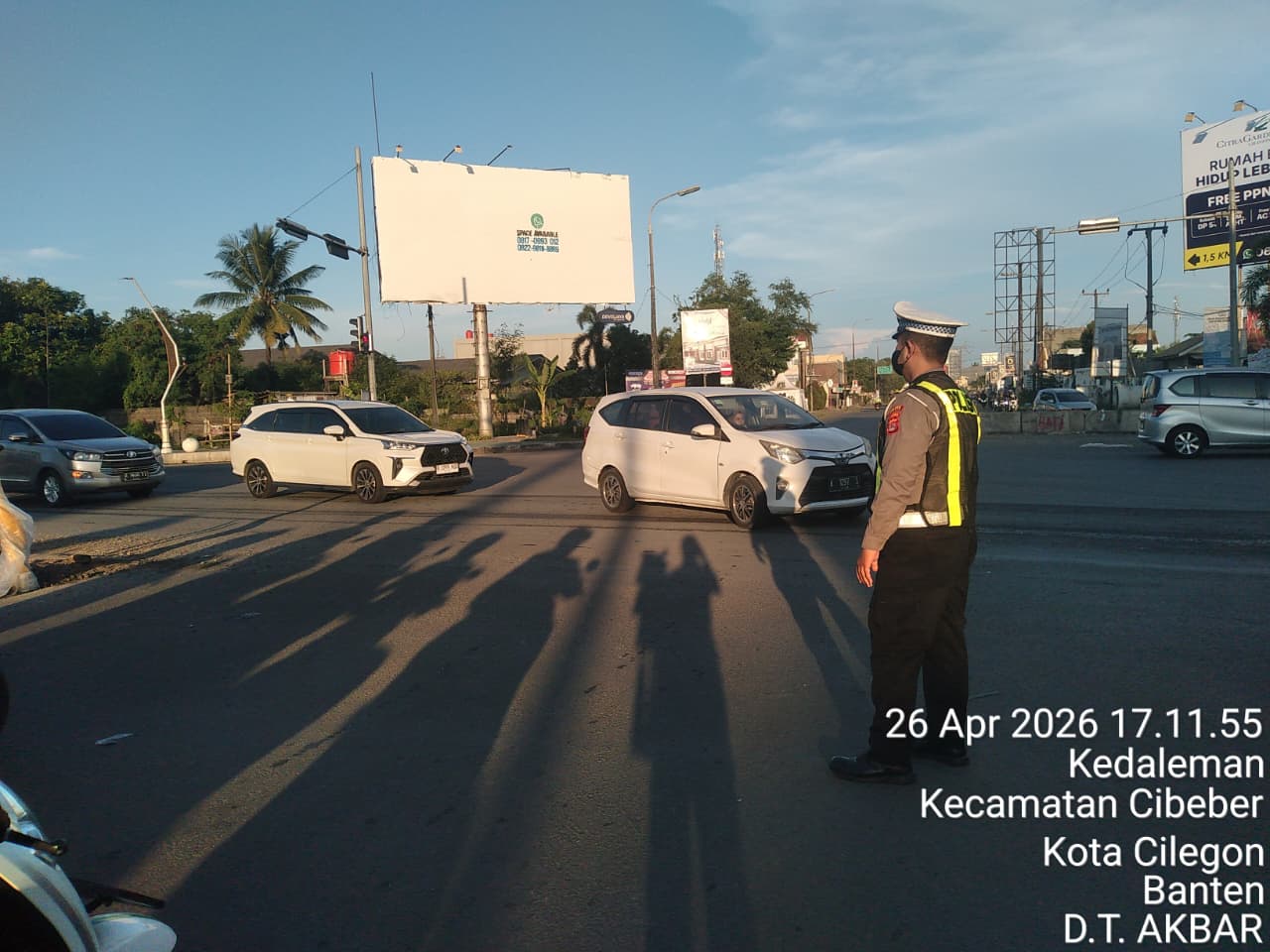 Cilegon, Satlantas Polres Cilegon Polda Banten – Berikan pelayanan kepada masyarakat Kasat lantas Polres Cilegon AKP Ridwan memerintahkan jajaran lalulintas untuk melaksanakan pengaturan lalu lintas di penggal – penggal jalan yang rawan kemacetan di Kota Cilegon, (Minggu,26/4/2026)