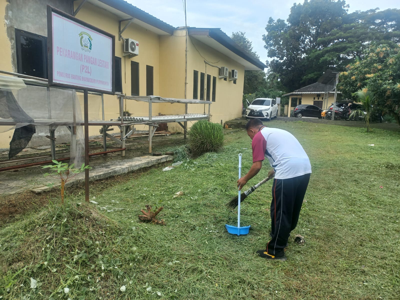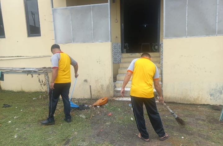 Personil Polsek Purwakarta menggelar kegiatan bersih-bersih lingkungan (jumsih) di sekitar Polsek Purwakarta dan area sekitar Polsek Purwakarta pada hari Jum’at pagi terakhir