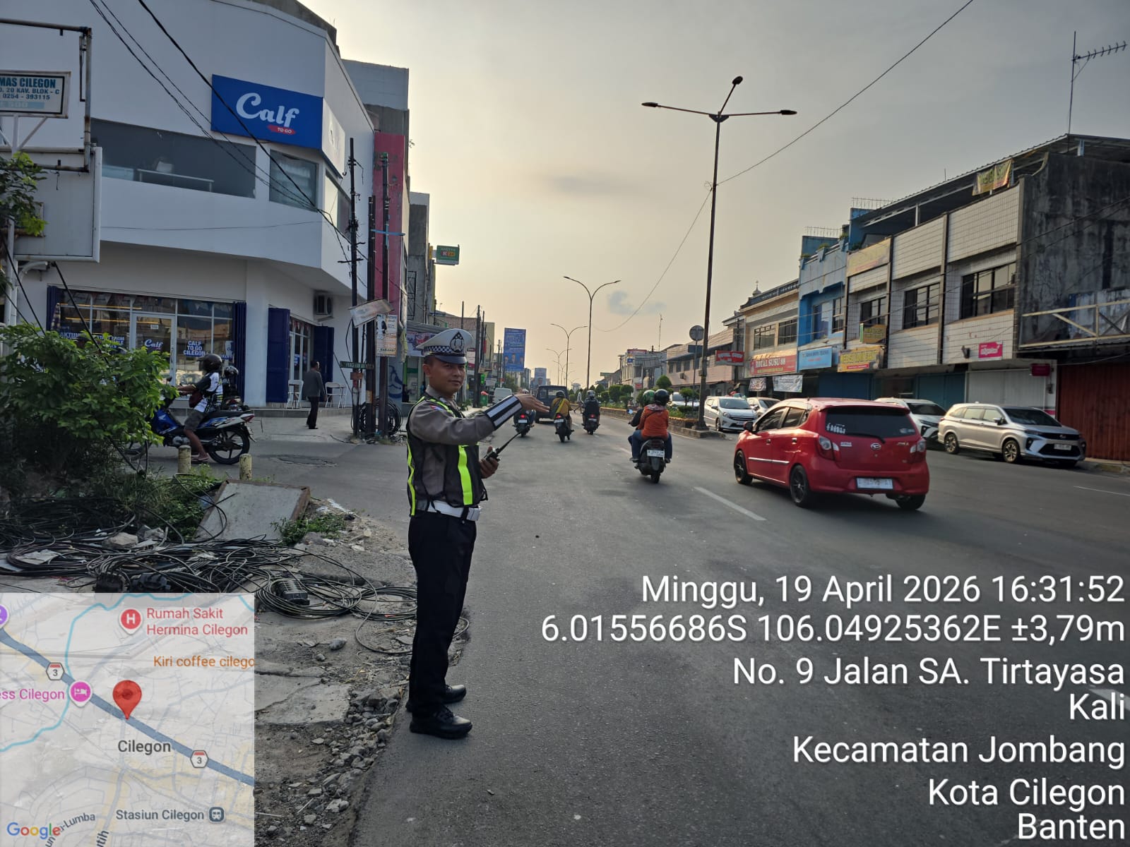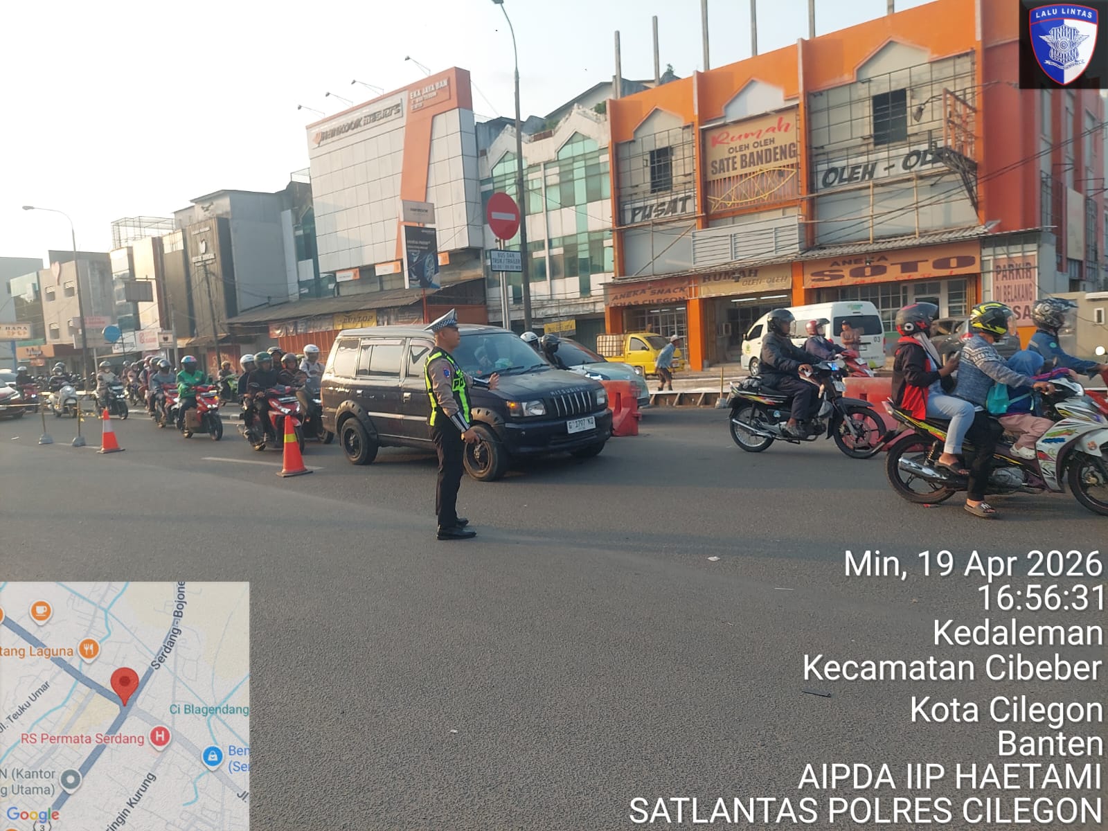 Cilegon, Satlantas Polres Cilegon Polda Banten – Berikan pelayanan kepada masyarakat Kasat lantas Polres Cilegon AKP Ridwan memerintahkan jajaran lalulintas untuk melaksanakan pengaturan lalu lintas di penggal – penggal jalan yang rawan kemacetan di Kota Cilegon, (Minggu,19/4/2026)Dalam giat Pengaturan Lalu lintas di Sore hari ini bertujuan agar terciptanya Kamseltibcar Lantas dan mengantisipasi terjadinya Laka...