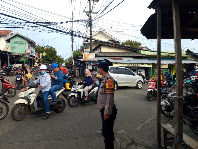 Mendekati Buka Puasa,Bhabinkamtibmas Polsek Ciwandan Pengaturan Lalu-lintas