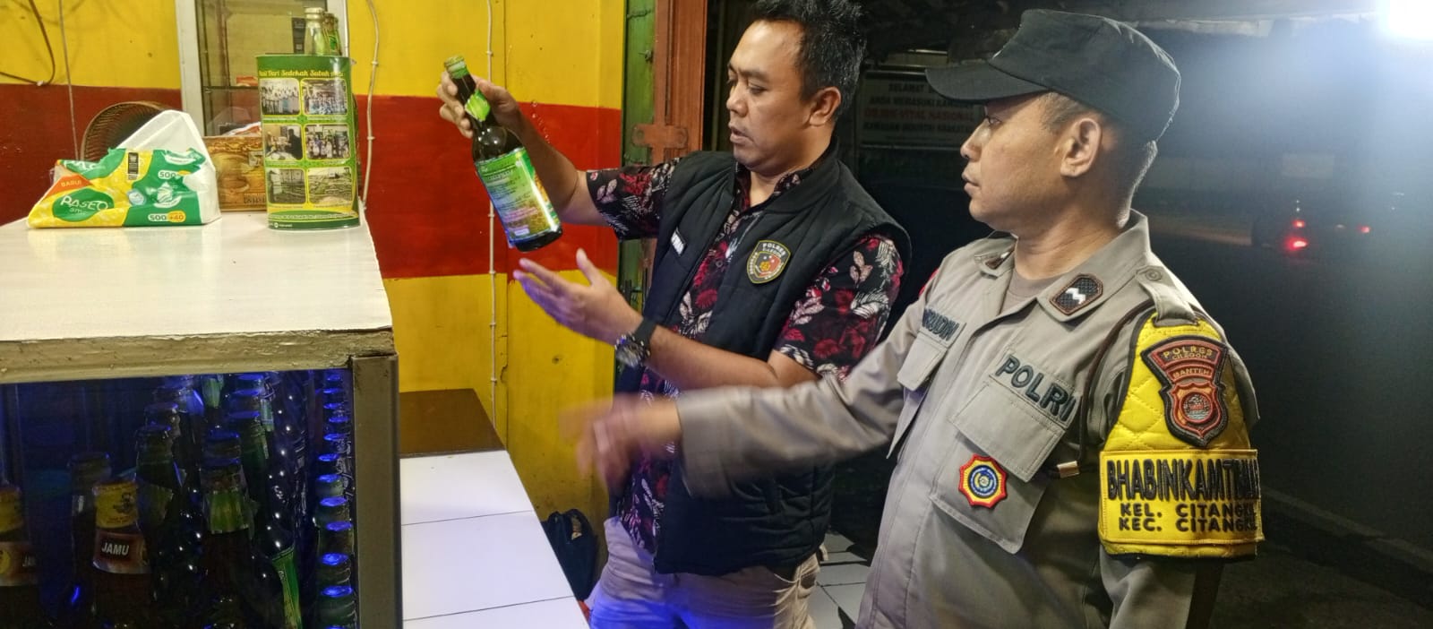 Polsek Ciwandan Gelar Operasi Pekat Amankan Miras Diwarung Jamu