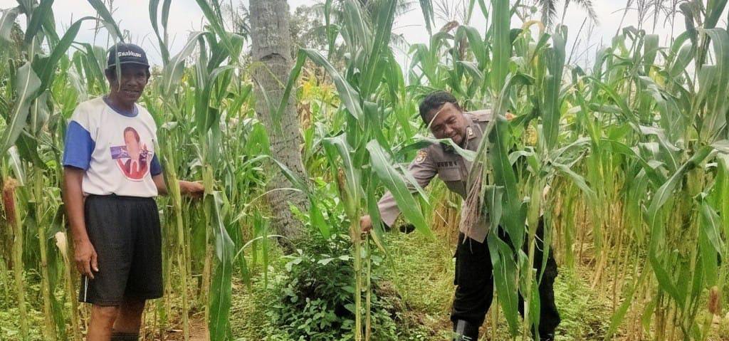 Anggota Polsek Anyar Monitoring Tanaman Jagung Di Desa Binaan