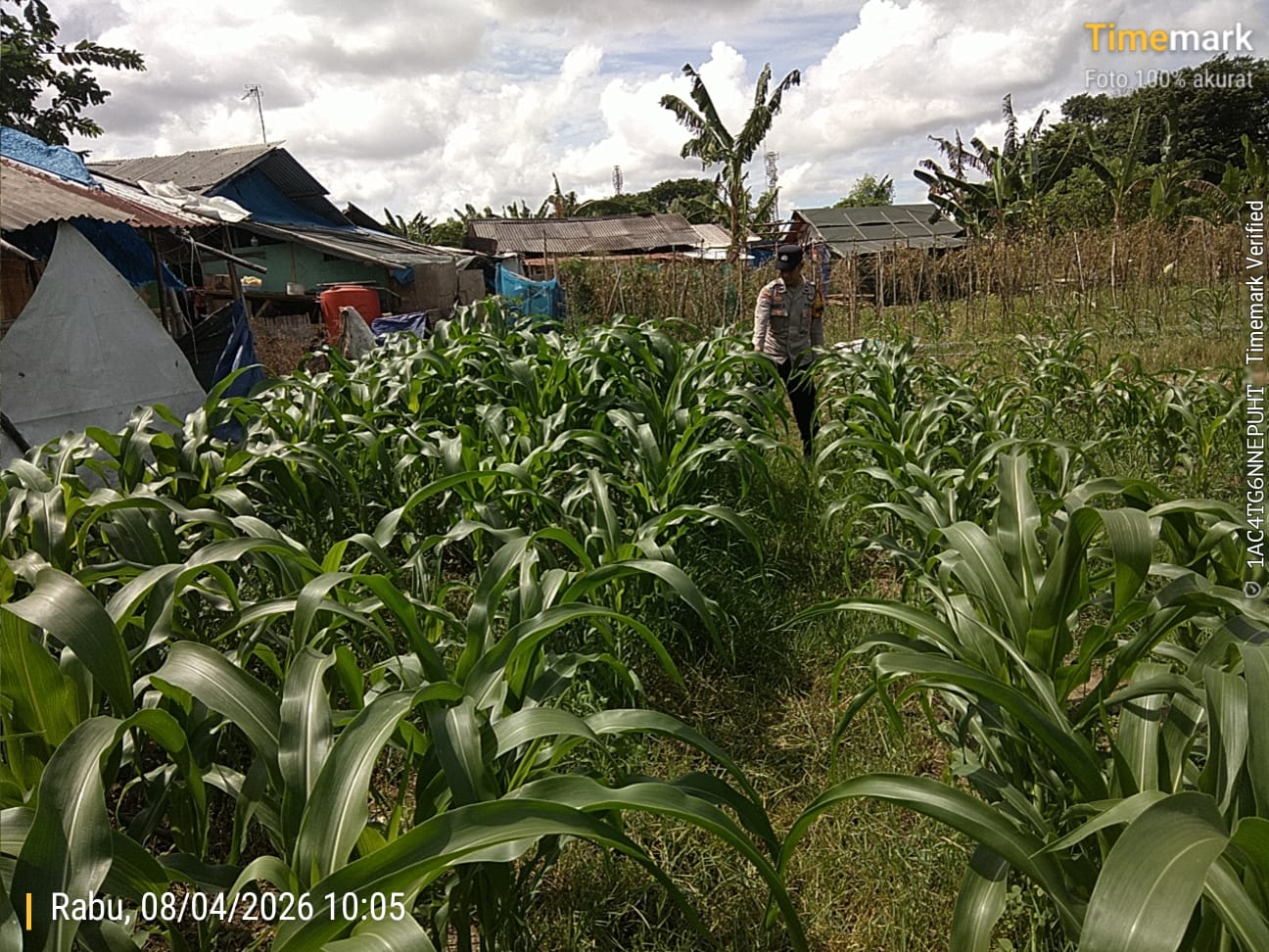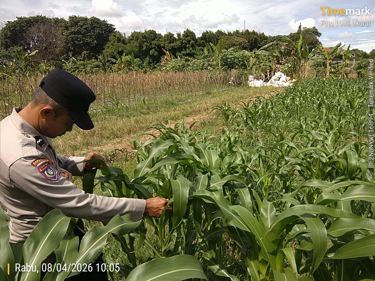 Bhabinkamtibmas Datangi Tanaman Jagung,Mengecek Pertumbuhannya