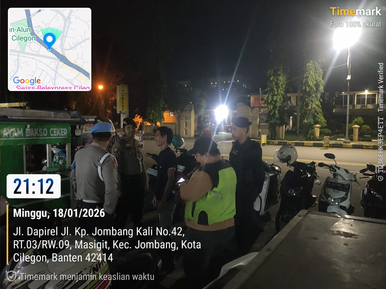 Anggota patroli samapta Polsek Cilegon laksanakan giat Blue light patrol antisipasi kejahatan malam hari jaga kondusifitas di wilayah