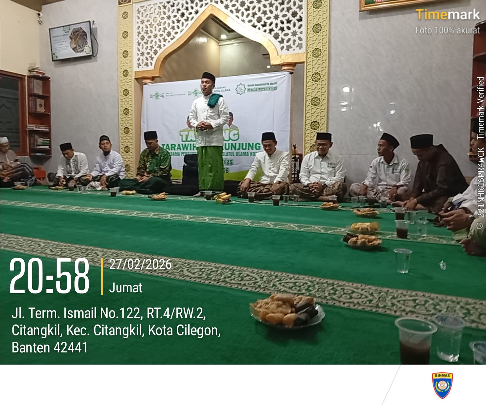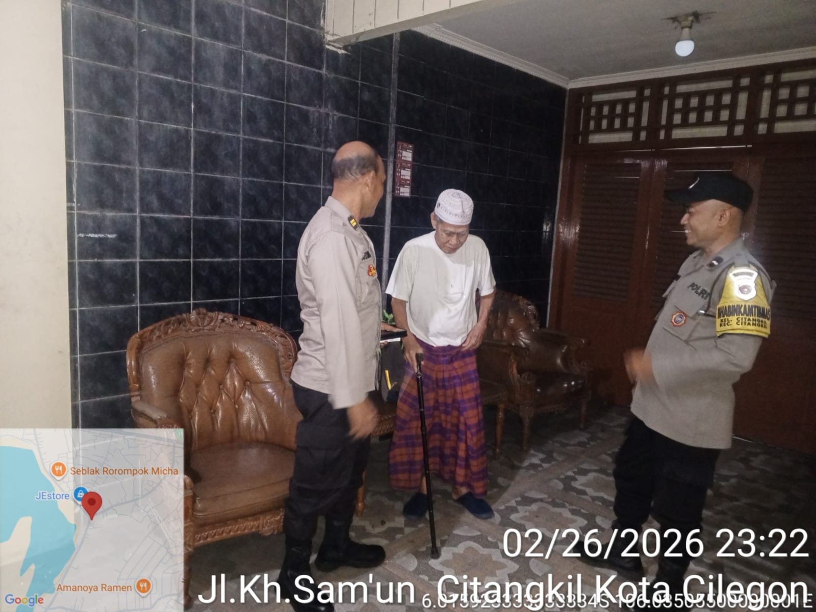 Cilegon - Polres Cilegon melalui Bhabinkamtibmas AIPDA WARUDIN melaksanakan kegiatan Tarwih Keliling (Tarling) di Mesjid Nurul Ikhlas, Link.Tegal cabe RT 01 RW 02 Kel.Citangkil, Jum'at (27/02/2026) malam. Kegiatan ini dihadiri oleh Lurah Citangkil, Babinsa SERKA JANDRI, Ketua DKM, PCNU dan rombongan, serta masyarakat setempat.Kapolres Cilegon Polda Banten AKBP Dr. Martua...