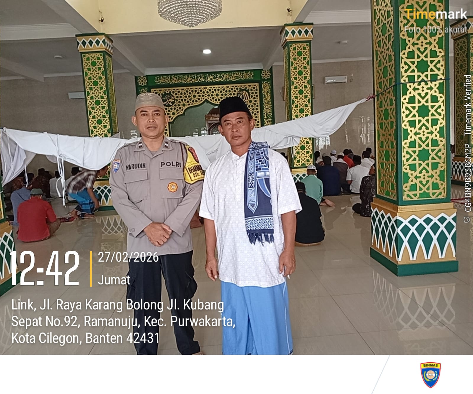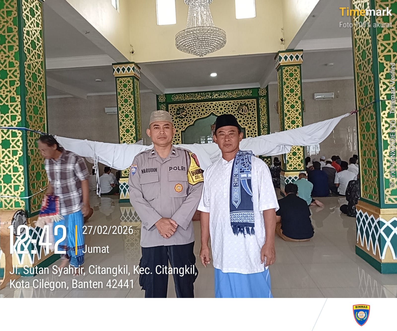 Cilegon - Bhabinkamtibmas Polsek Ciwandan Polres Cilegon Polda Banten Selesai melaksanakan Sholat secara berjama’ah dan Sampaikan Himbauan-himbauan Kamtibmas Kepada Masyarakat Jama'ah Yang ada Dimasjid, Jum'at (27/02/2026).Kapolres Cilegon Polda Banten AKBP Dr. Martua Raja Taripar Laut Silitonga Melalui Kapolsek Ciwandan Polres Cilegon Polda Banten KOMPOL Achri Dwi Yunito Mengatakan bahwa Usai melaksanakan...