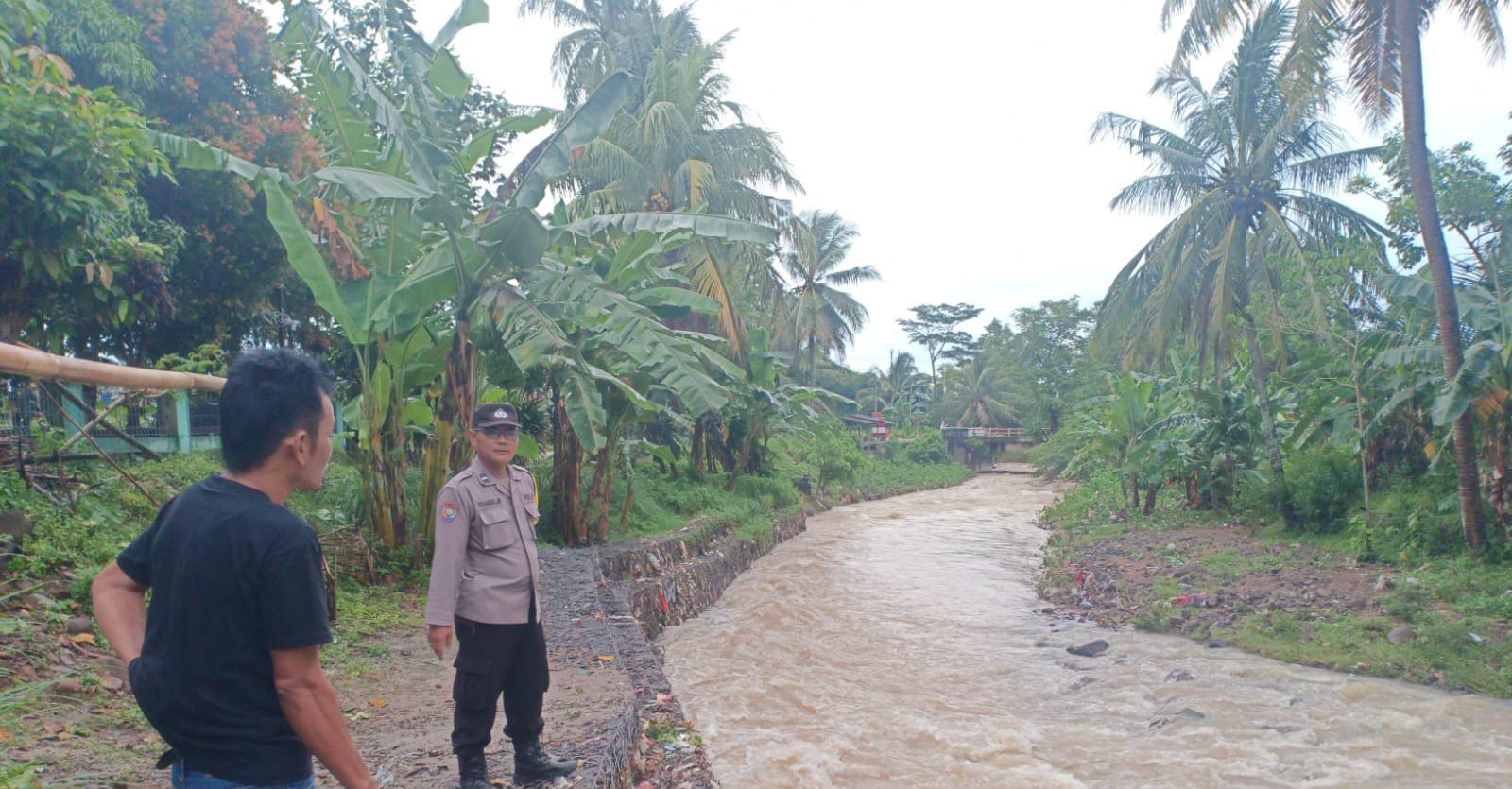 *Demi Warga Tetap Aman, Bhabinkamtibmas Konsisten Awasi Debit Sungai Secara Berkala*