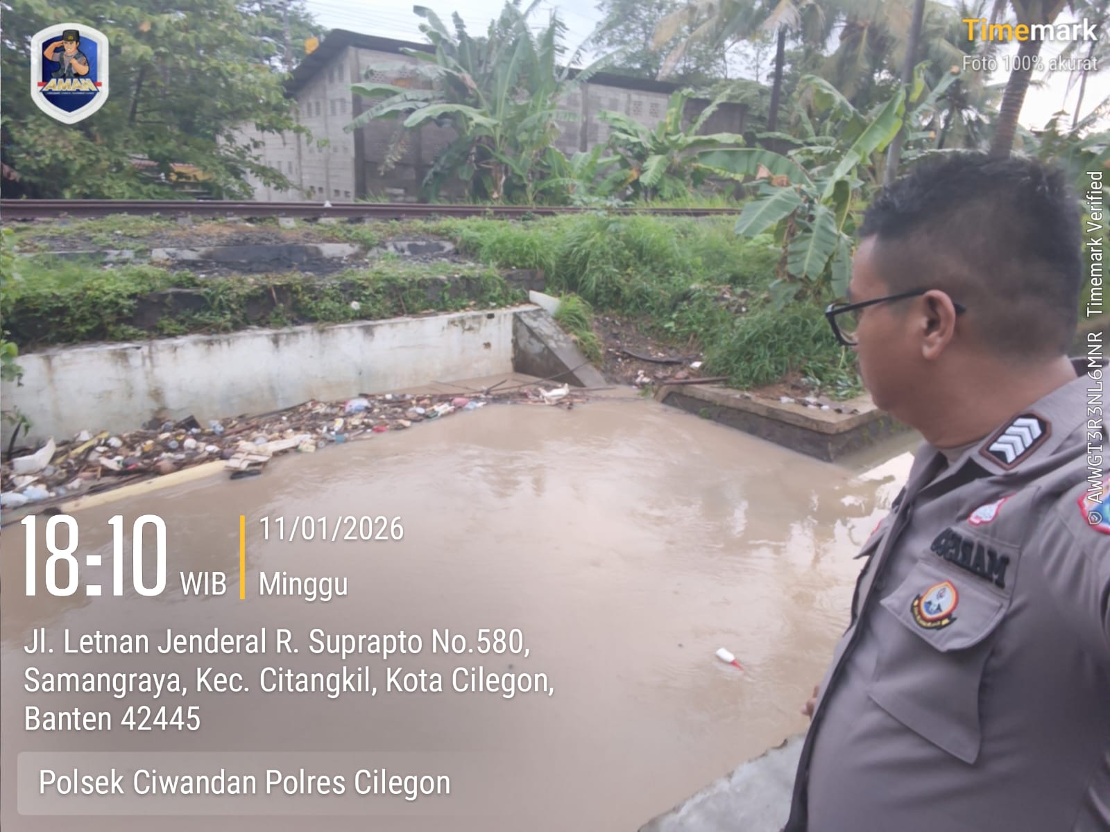*Cilegon* - Hujan Dengan Intensitas yang Cukup Tinggi Pada hari Minggu tanggal 11 Januari 2026 Personil Polsek Ciwandan Polres Cilegon Polda Banten Melaksanakan Rekayasa Lalu-lintas di titik rawan Genangan Air, Minggu (11/01/2026).Kapolres Cilegon Polda Banten AKBP Dr. Martua Raja Taripar Laut Silitonga Melalui Kapolsek Ciwandan Polres Cilegon Polda Banten KOMPOL...