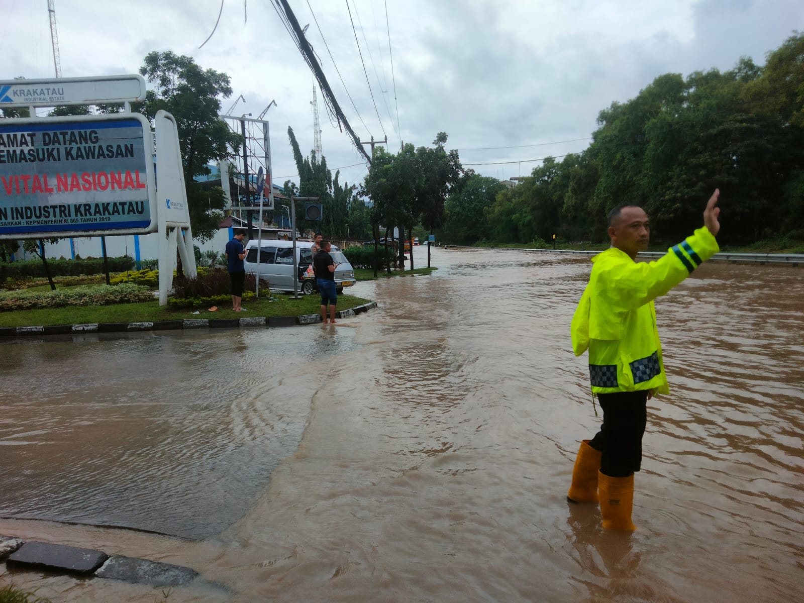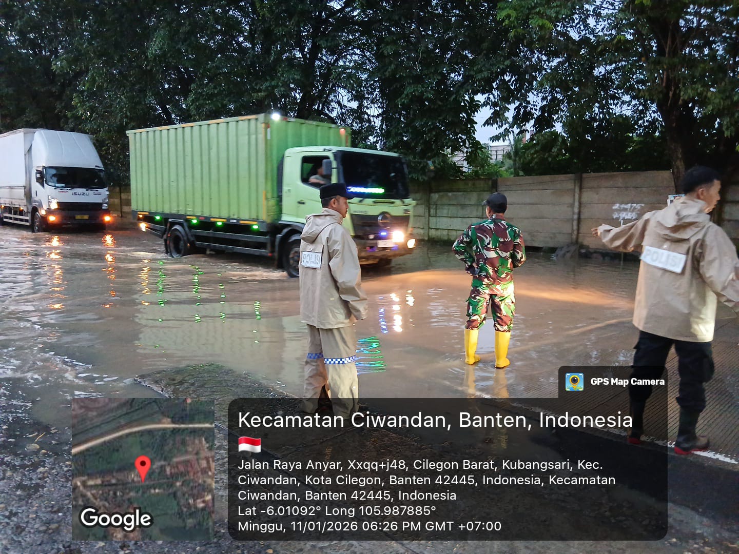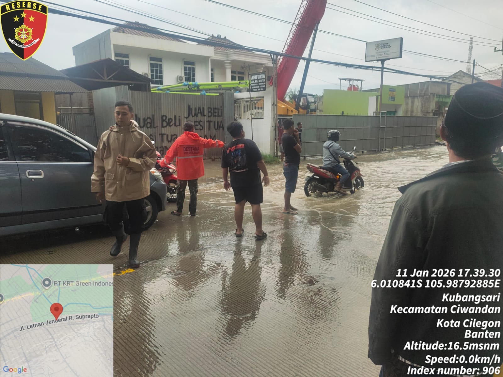 Personil Polsek Ciwandan Polres Cilegon Polda Banten Gerak Cepat Rekayasa Lalu-Lintas Saat Banjir