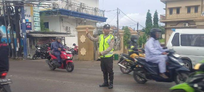 Urai Kendaraan Pengaturan Lalu Lintas Oleh Polsek Anyar
